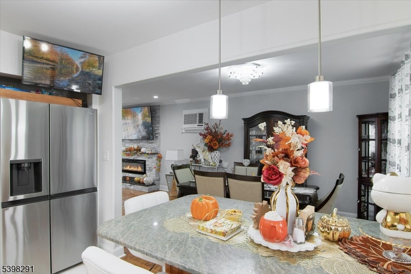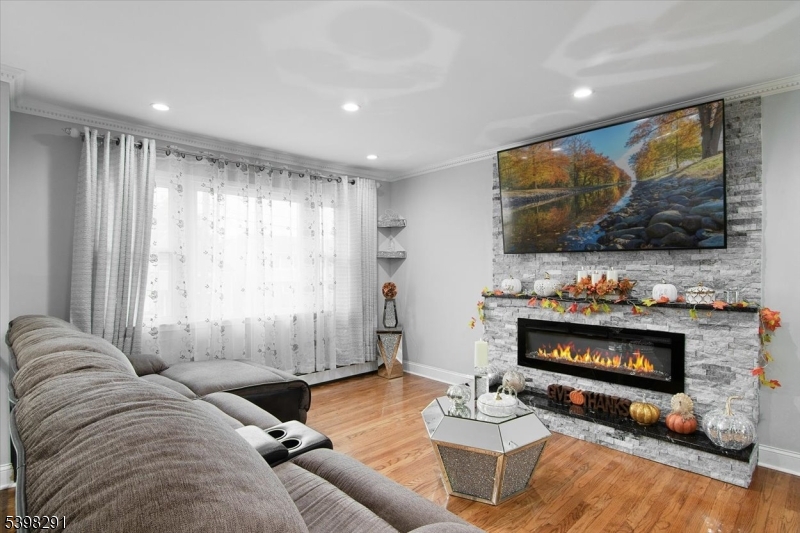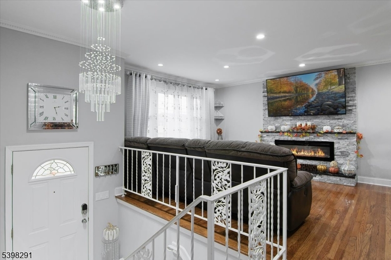 Discover modern comfort and timeless style in this beautifully renovated home located in Belleville, New Jersey. This spacious 4-bedroom, 2-full-bath residence offers an inviting blend of contemporary finishes and thoughtful design throughout.Step into an open and airy main level featuring a bright dining room and a stunning living room anchored by a stone-encased electric fireplace. The updated kitchen is a true centerpiece, showcasing stainless steel appliances, granite countertops, a breakfast peninsula and a charming coffee nook perfect for mornings at home.The lower level expands your living space with a warm and welcoming family room complete with a dry bar and a second electric fireplace, ideal for entertaining or relaxing. A screened porch provides a peaceful outdoor escape with views of the fenced, park-like backyard. Retreat to the newly designed custom bathroom finished with marble throughout, a double vanity, and designer lighting. Additional highlights include recessed lighting and gleaming hardwood floors that flow seamlessly throughout the home.Outside, enjoy the convenience of a double built-in garage, a driveway with parking for two and a spacious yard offering privacy and tranquility. All of this is ideally situated close to shops, restaurants, schools, parks, houses of worship, major highways and train stations making commuting and daily living a breeze.Move-in ready and meticulously updated, this Belleville gem is the perfect place to call home. GSMLS 3998936