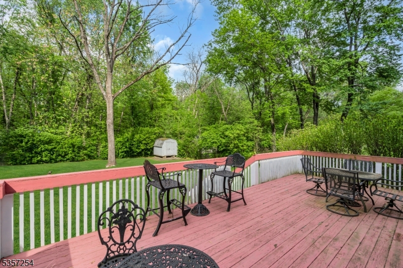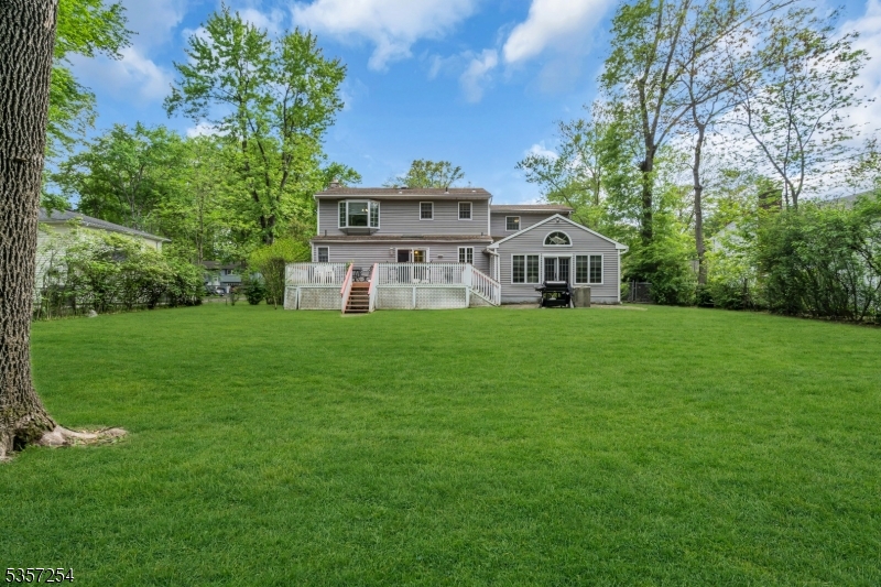 Welcome to this beautifully maintained Colonial in the heart of Berkeley Heights! Gleaming hardwood floors flow throughout the first floor, which features a welcoming foyer, formal living room with fireplace, elegant dining room, and a bright family room with large windows and French doors opening to the backyard. The spacious eat-in kitchen boasts granite countertops, an island, and plenty of cabinetry. A powder room and an additional room perfect for an office or pantry complete the main level. Upstairs, the primary suite includes a full bath, joined by three additional bedrooms and another full hall bath. The finished basement provides even more living space, with a recreation room, private office or guest room with door, full bath, laundry area, and a walk-in closet. Enjoy the outdoors on the deck overlooking a flat backyard with shed. Additional highlights include a two-car garage, central air and heat, and an unbeatable location near the Berkeley Heights train station, town center, parks, and schools. Flood zone due to creek in the back. Eventhough flood insurance is required, the house has not been flooded in the last 19 years. You can go to homes.com and see the Matterport 3D tour and floor plans of this house. GSMLS 3995474