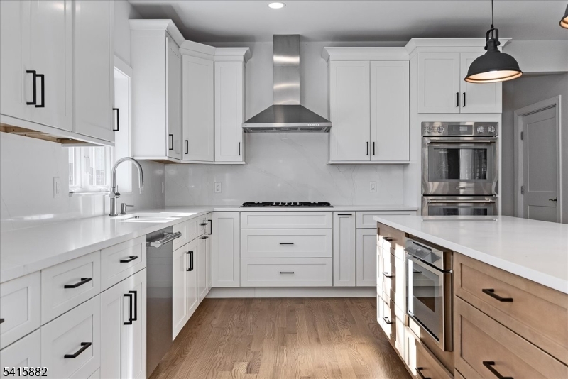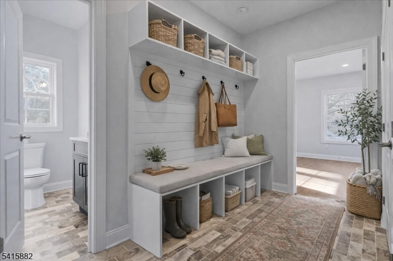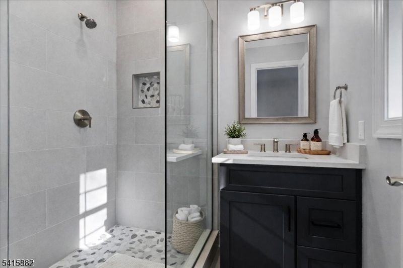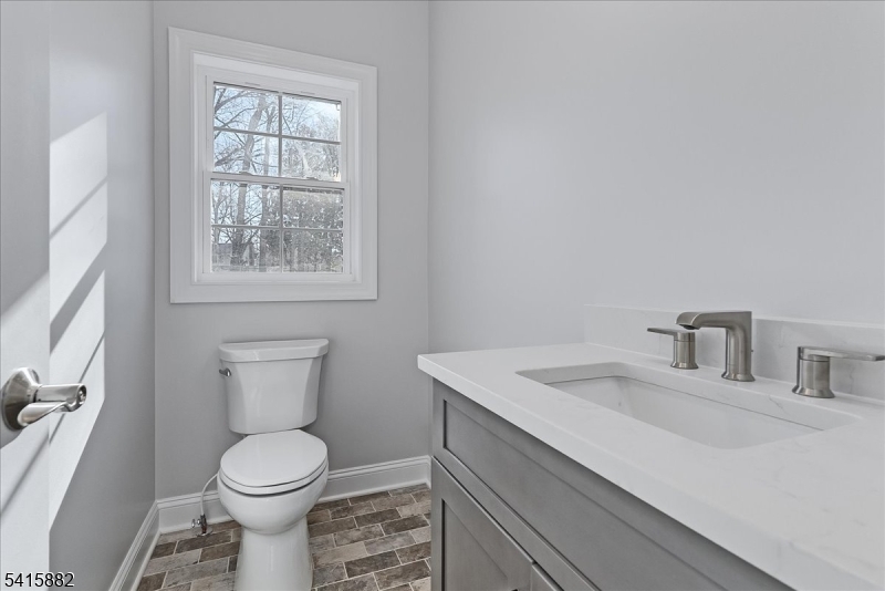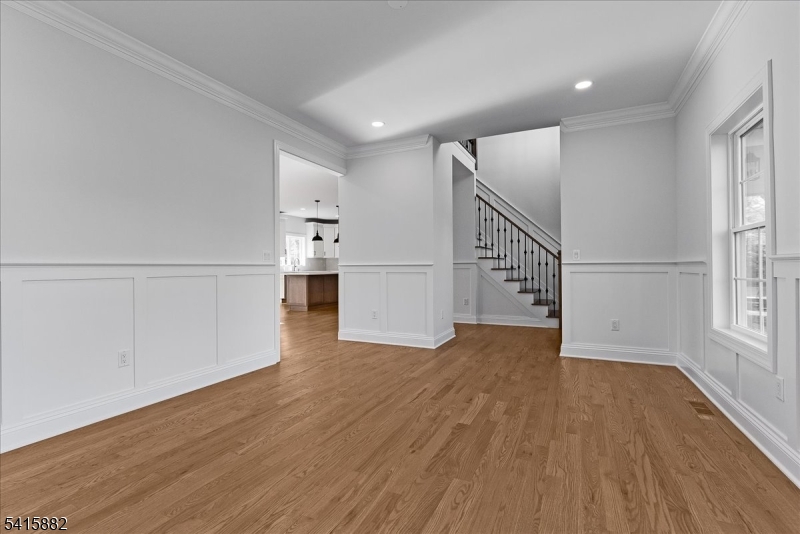 Set on a wide lot in Berkeley Heights Twp, 181 Maple Ave delivers refined new-construction living with custom millwork and a bright, open layout. White oak hardwood flooring runs throughout, and the chef's kitchen pairs quartz counters with a full Thermador appliance package and generous island flow to the main gathering spaces. A private first-floor bedroom suite tucked off the mudroom offers ideal guest or office flexibility with an en-suite bath. Upstairs are four bedrooms and three full baths, including a primary suite with double vanity, soaking tub and large enclosed shower, plus another en-suite bedroom. Enjoy a maintenance-free deck, new privacy fencing, irrigation and a paved driveway. The fully finished lower level includes a rec room, powder room, plus storage and utilities. Two-zone HVAC and thoughtful finishes complete this exceptional Berkeley Heights offering. GSMLS 4014114