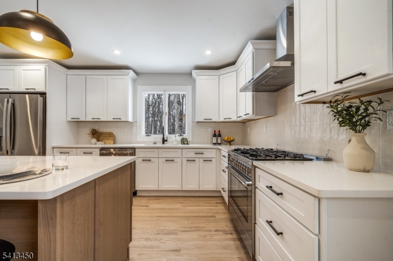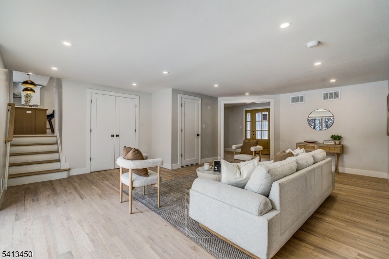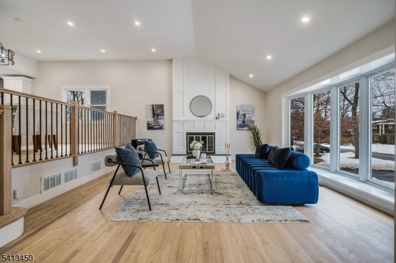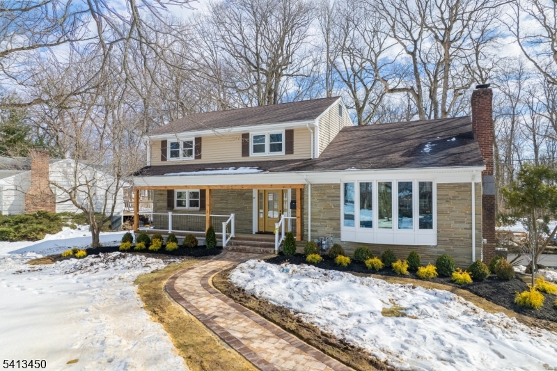 Welcome to this stunning, fully renovated 4-BR, 3-BA home offering the perfect blend of modern sophistication and everyday comfort. The sun-drenched, open-concept main level features a gourmet kitchen anchored by a dramatic 10-foot island, wine fridge, and premium SS appliances perfectly integrated with the dining area and an inviting living room with a cozy fireplace. The versatile first floor also includes a guest bedroom, full bath, laundry room, and a spacious family room with direct access to the deck and backyard. Upstairs, discover two generously sized bedrooms, a stylish hall bath, and a serene primary suite with a private en-suite. The basement offers a large recreation area with garage access, ideal for a home gym or media room. Enjoy outdoor living in the expansive backyard backing to peaceful, private woods. Ideally located near Governor Livingston HS, this move-in-ready gem delivers space and style in a prime location. Note: Landscaping is currently in progress. Furnace 2016 & Boiler 2023 - Electrical is 200 Amps GSMLS 4014331