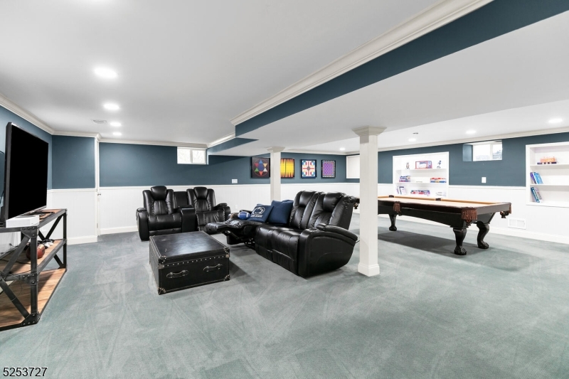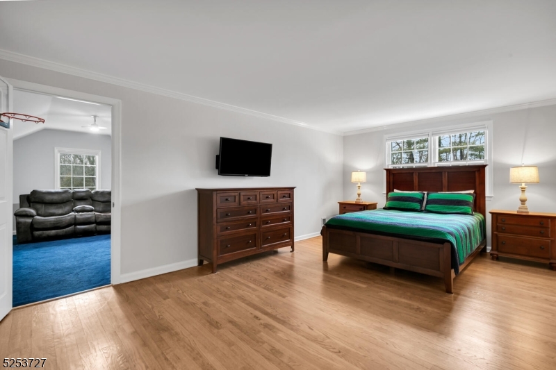 Nestled on an acre in a desirable Basking Ridge neighborhood, this beautifully updated 6-bedroom home offers hardwood floors throughout, bright welcoming rooms, and multiple gathering spaces perfect for both everyday living and effortless entertaining. A charming front porch leads into the lovely foyer that opens to the spacious living room with a wood-burning fireplace. This flows directly into the sun-drenched dining room, filled with natural light from numerous windows. The dining room seamlessly connects to the updated kitchen, which boasts stainless steel appliances, granite countertops, a large center island with seating, prep sink, and storage, as well as an adjacent breakfast area. The family room offers a second brick wood-burning fireplace and sliders to the rear yard. Completing this level are a generous primary suite with an updated bath and walk-in closet, an additional bedroom, home office, full bathroom, and laundry room. Upstairs, an enormous great room offers versatile space, along with two additional bedrooms (one with an adjacent office), and a full bath. The finished basement features a massive rec room ready to customize to suit your needs, plus a full bathroom. Outside, enjoy the deck and large paver patio overlooking the expansive, level lawn. Located in a highly rated New Jersey school district, this exceptional property is just minutes from major transportation, restaurants, and shopping, offering the perfect blend of privacy, space, and convenience. GSMLS 4014899