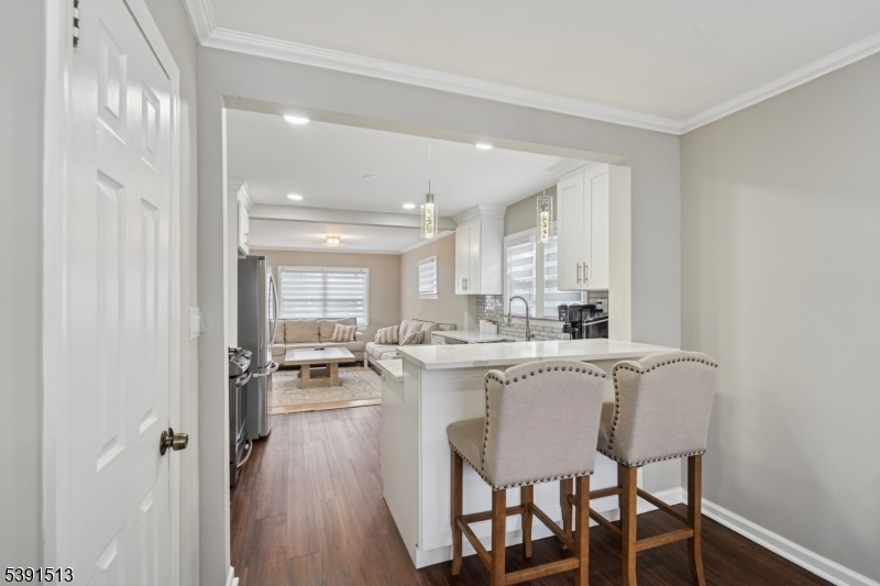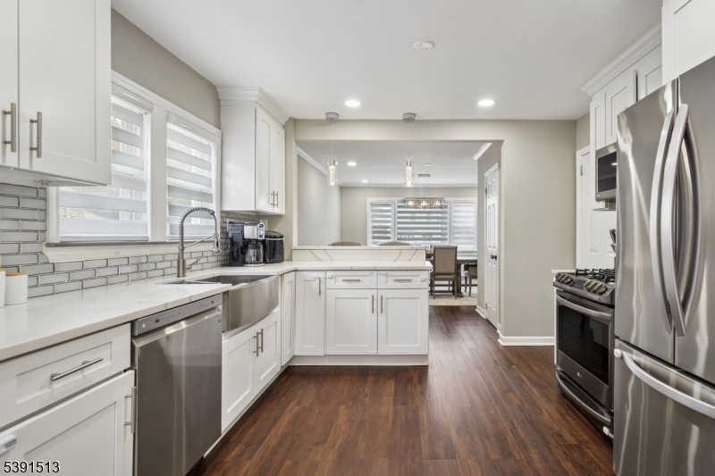 Welcome to this beautifully renovated 3 bedroom, 2.5 bath Colonial, blending timeless charm with modern luxury. Step inside to find brand new hardwood floors flowing seamlessly throughout both levels, creating an inviting and elegant atmosphere. The kitchen is a true showstopper, showcasing waterfall marble countertops, sleek cabinetry, and new high end stainless steel appliances designed for both beauty and functionality. Adjacent, the dining room features a large window overlooking the backyard, filling the space with natural light and creating a warm, inviting atmosphere for everyday meals or entertaining. The spacious living area includes a custom built-in electric fireplace, perfect for cozy evenings or stylish gatherings. A convenient powder room on the main floor adds everyday practicality. The finished basement offers a rec area, full bathroom and kitchenette, ideal for guests, a home office, or extra living space. Upstairs, you'll find three bright bedrooms and an updated full bathroom, plus a large finished attic for ample storage. Enjoy outdoor living on the new covered composite deck, perfect for entertaining or relaxing year round. Just steps from a NYC bus stop, this home is a 5 minute walk to Blue Ribbon Oakview Elementary School and close to parks, shops, and the GSP for easy commuting, & features a driveway with space for up to four cars. Every detail has been thoughtfully updated to offer comfort, style, and convenience- making this home truly move in ready! GSMLS 3992808