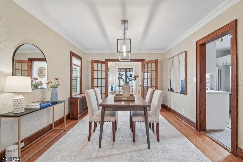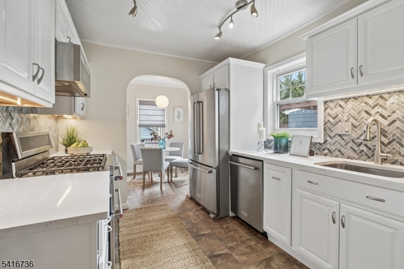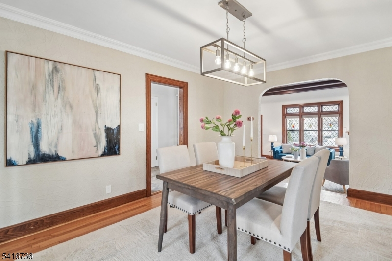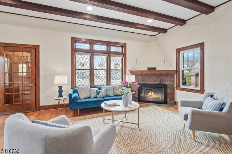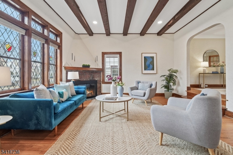 Discover this compelling combination of classic Tudor charm with well-executed renovations in this 3 bed 1.5 bath home truly in the heart of the sought-after Brookdale Park neighborhood. Timeless architectural detail pairs seamlessly with thoughtful modern upgrades. Enter via a welcoming vestibule into a striking living room featuring 9-foot, wood-beamed ceilings, recessed lighting, a hearty brick fireplace, original HW floors, and rich moldings that add warmth and character. Up a few steps, the formal dining rm flows seamlessly into a renovated eat-in kitchen w/quartz countertops, SS appliances, a dedicated breakfast nook, and a renovated, discretely located half bath. A secluded rear sunroom, accessed from the DR thru French doors, overlooks an expansive Trex deck and private backyard - ideal for entertaining and everyday living. Upstairs, three well-sized BRs provide comfortable accommodation, including a notably spacious primary BR w/a wall of closets. Bathed in natural light from its skylight, the expansive, updated hall bath offers scale and functionality w/a large tub + separate glass shower. The finished basement, w/ separate office space, adds valuable living space and storage/utility space. Located just two blocks from Brookdale Pk. and is close to Brookdale Elementary and the unique Brookdale commercial area, affording effortless access to playgrounds, tennis/pickleball courts, a dog park, fantastic local eateries, and easy NYC transportation. EV charger incl. GSMLS 4014941