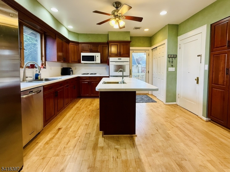 LOCATION, LOCATION, LOCATION! Move right in to this charming 3 bedroom, 2 bath Cranford gem. Ideally and centrally situated less than a half mile to Cranford's award winning downtown and NJ transit station, as well as the public library, community center, pharmacy, Lidl grocery store, and much more! Featuring an open and connected floor plan with living spaces on a single level with fresh, neutral paint; 8.5' ceilings; tons of natural light from the east facing windows; and a functional wood-burning fireplace in the living room. Large eat-in kitchen with center island, views of the park, and room to gather. A spacious deck is great for BBQs or socializing. This home has direct access to Lincoln Park where you get to experience the largest yard in town without any maintenance (and you will never have a neighbor blocking the view)! Additional highlights include new roof (2023), 2024 bathroom update, and a central air duct system. finished dry basement offers laundry, additional office, recreation, and/or playroom. Abundance of storage in the attic or in the oversized 2-car detached garage with four parking space driveway and wiring for a Level 2 EV charger. The fenced in yard wraps neatly around the property and offers space for a firepit and gardening in the 3 oversized planter boxes. This house is being sold strictly as-is. It is move -in ready with the opportunity to add your style to a home that is truly central to everything this wonderful town has to offer. GSMLS 4013844