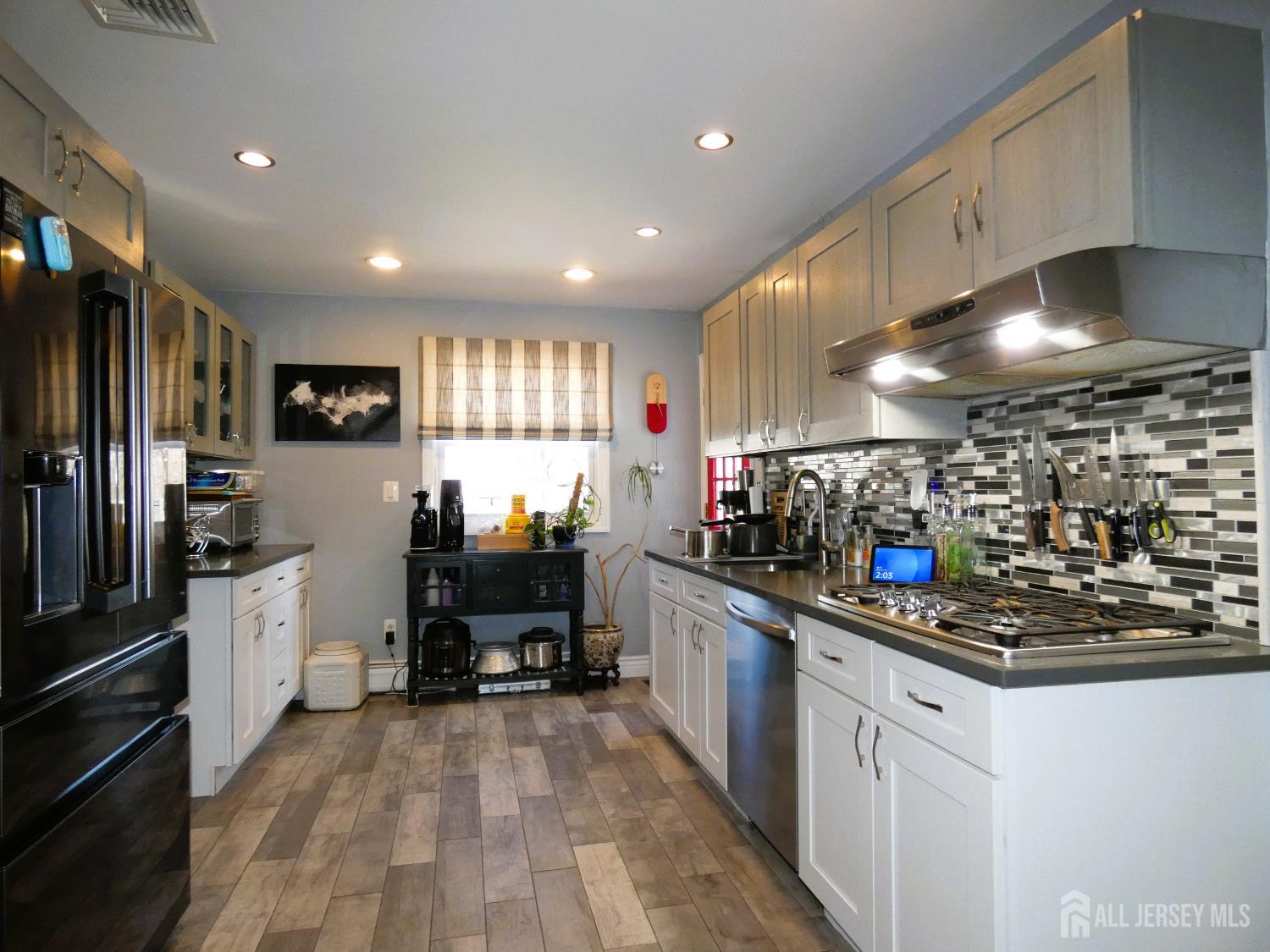 Stunning West Facing (buyer to verify) 3 Bedroom, 2 Bath Home in sought after North Edison School District (JP Stevens High School has a 9 rating). Features renovated Kitchen with Quartz Counters & SS Appliances & Radiant Heated Floors in Family Room with sliders leading to an amazing yard. Backyard has an Outdoor Kitchen with built in grill, refrigerator & searing station plus 2 decks to have great parties. Finished Basement & 2 Car Attached Garage w/Tesla Hookup. 4th Bedroom possible with Garage conversion. Brand New Central AC, New Dish Washer, Dryer, Washer & Garage Doors. Perfect for NYC Commuters only a 10 Minutes Drive to both Metro Park Train Station or Metuchen Train Station with Direct Trains to NYC. CJMLS 2612208R