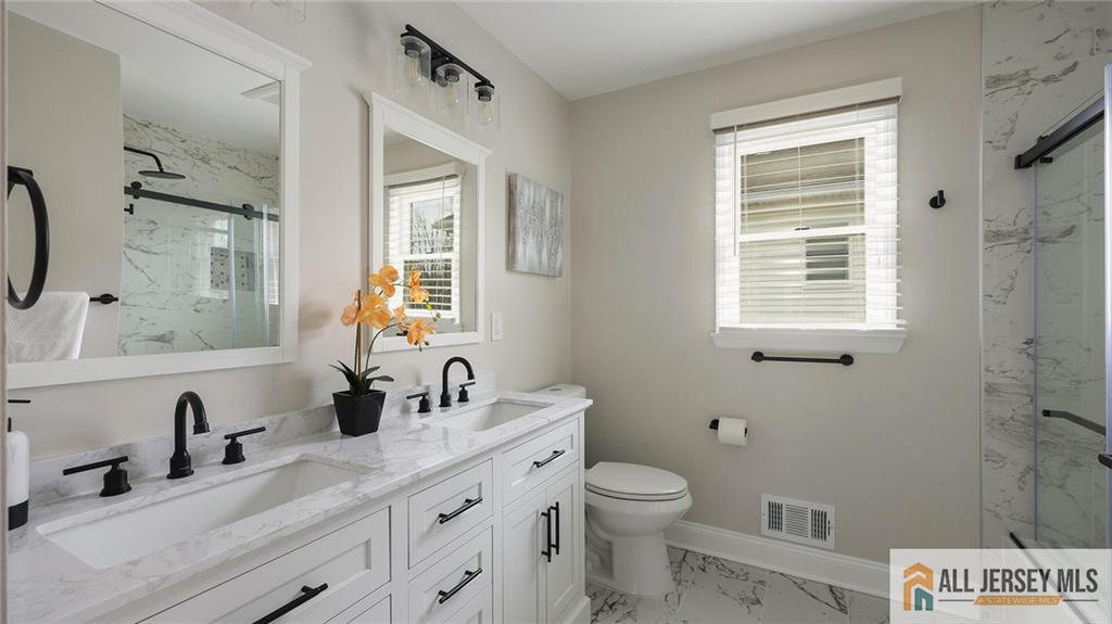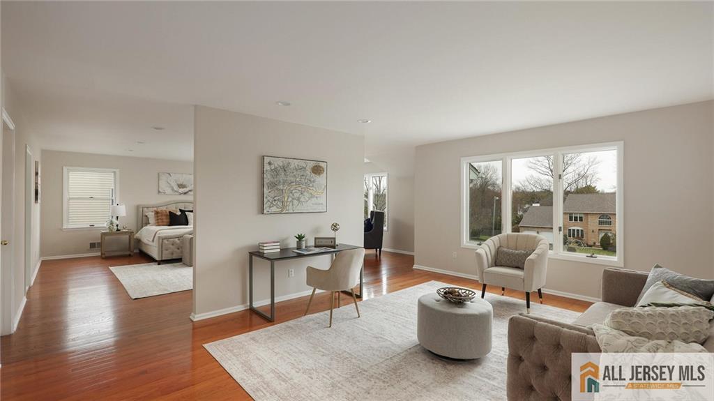 Location & Beauty - What a Combination! Welcome Home to this Large, Stunning 5-Bedroom, 3 Full Bath Center Hall Colonial, Beautifully Situated in a Gorgeous Cul-De-Sac Neighborhood in the Highly Sought-after North Edison School District - John P. Stevens High School. East Facing Exposure, Bright, Sunny And Airy, This Exquisite Designer Home Features Gleaming Hardwood Floors and Custom Details Throughout, an Updated White Kitchen, and Two Newly Renovated Full Baths Including a Luxury Primary Bathroom. Step Through the Grand Double-Panel Entry Doors into the Spacious Foyer, Where two Coat Closets Sit on Each Side of the Entryway. On Your Left is the Large Living Room with w/Distinctive Three-Window Layout Reminiscent of a Bay Window, While on Your Right is the Formal Dining Room with the Same Beautiful Window Design, Both Filling the Home with Abundant Natural Light. Moving Forward is the Expansive Family Room with Vaulted Ceiling, Skylights, and a Cozy Fireplace, Creating a Bright and Welcoming Gathering Space. The Open Floor Plan Flows Seamlessly to the Dining Area by the Double Sliding Doors to the Backyard and into the Beautifully Updated White Kitchen Featuring Quartz Countertops, Quartz Backsplash, Stainless Steel Appliances, Breakfast Peninsula and Pantry. To the Right of the Kitchen is the Convenient First-Floor Laundry Room with Access to a Full Bath with Stall Shower and the Oversized Two-Car Garage. Adjacent to the Left of the Family Room is the Spacious 5th Bedroom, and Together with the Full Bath On this Level, It Offers an Ideal Setup for Guests or Extended Living. Take the Elegant Turning Staircase to The Second Floor, Where You Arrive at the Impressive and Expansive Primary Bedroom Suite Featuring Multiple Large Windows, Two Deep Walk-In Closets and a Generous Sitting/Office Area Perfect for Relaxing or Working from Home. The Newly Renovated Luxury Primary Bath is Truly a Standout, Showcasing a Beautiful Freestanding Soaking Tub, Large Stall Shower, Double Vanity, and Modern Lighting. The Second and Third Bedrooms are also Generously Sized. Nearby is the Newly Updated Full Hallway Bath with Tub/Shower, Double Vanity, and Stylish Lighting. the Fourth Bedroom is Uniquely Designed with Vaulted Ceiling and a Large East-Facing Window that Brings in Abundant Natural Light, Plus a Separate Sitting Room that Can Serve as an Additional Office or Bedroom. A Large Full Basement with High Ceiling Offers Over 1000Sqf of Potential Living Space if Finishedan Excellent Opportunity For Future Value. Fantastic Location, Near JP Stevens High School, Middle School And Elementary School, Convenient to NJ Transit Trains, Shopping, Dining, and Major Roadways. Notable Updates: Two New HVAC Systems (Both Furnaces And Condensers) In 2022; New Hot Water Heater In 2024; Brand New Hardwood Floor in Primary Bedrooms & in the Two Large Walk-in Closets. This Beautiful Home Will Not Last Long! Showing Starts 3/17/26. CJMLS 2661469M