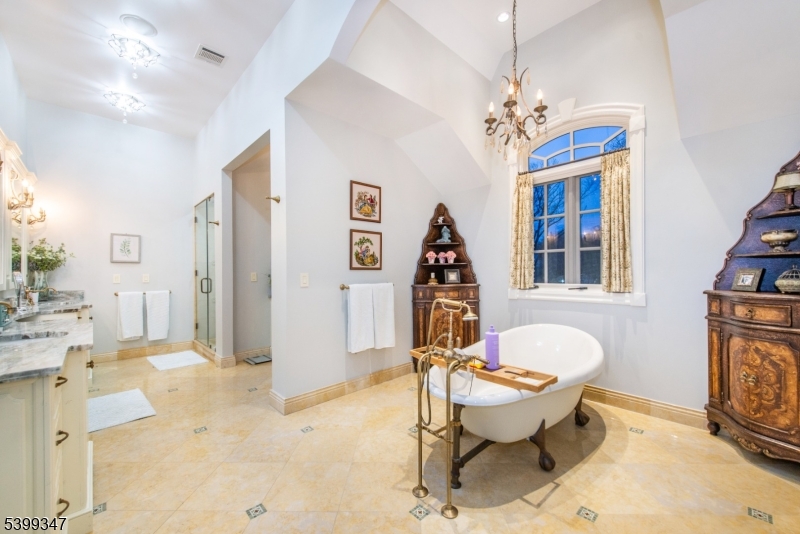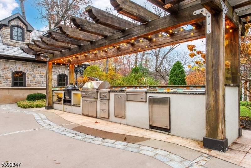 Welcome to pure perfection in the prestigious town of Essex Fells. Drive through private gates and up an impressive winding driveway to this breathtaking residence set on an expansive wooded lot w/ sweeping mountain views. Step inside to a remarkable foyer w/ a grand wrap-around staircase. To the left, a sophisticated living room awaits and to the right, a richly appointed office. The state-of-the art kitchen flows seamlessly into the dining room-with top-of-the-line appliances, custom carpentry, and fireplace. A 1st floor laundry room, easy backyard access, and stairs leading to both the 2nd floor and basement complete the main level. Throughout the home, every bathroom has been designed w/ great detail and luxury in mind. Upstairs, you'll find 3 spacious bedrooms, each w/ its own full en-suite bath and walk-in closet w/ custom shelving. 1 bedroom includes doors leading to a private balcony. An additional laundry room is provided on this floor for easy functionality. The primary suite is a retreat in itself, featuring a private balcony, a large walk-in closet fit for royalty, and a spa-like primary bath complete w/ soaking tub, dual vanities, bidet and a shower, crafted to deliver true resort-style indulgence. The fully finished basement redefines luxury w/ a complete family room, home gym, pool and poker rooms, full bar, and wine cellar. Step outside to an outdoor oasis. Stroll through a charming trellis walkway leading to a 3-car garage, a fully equipped kitchen, brick GSMLS 4000543