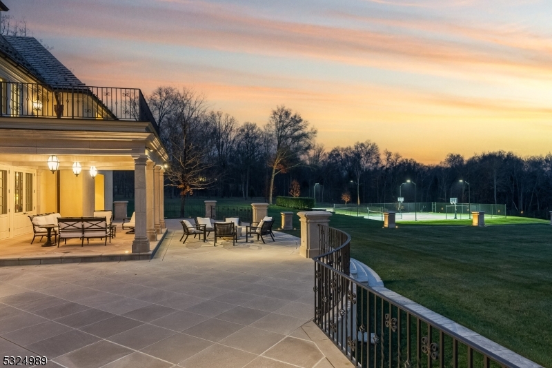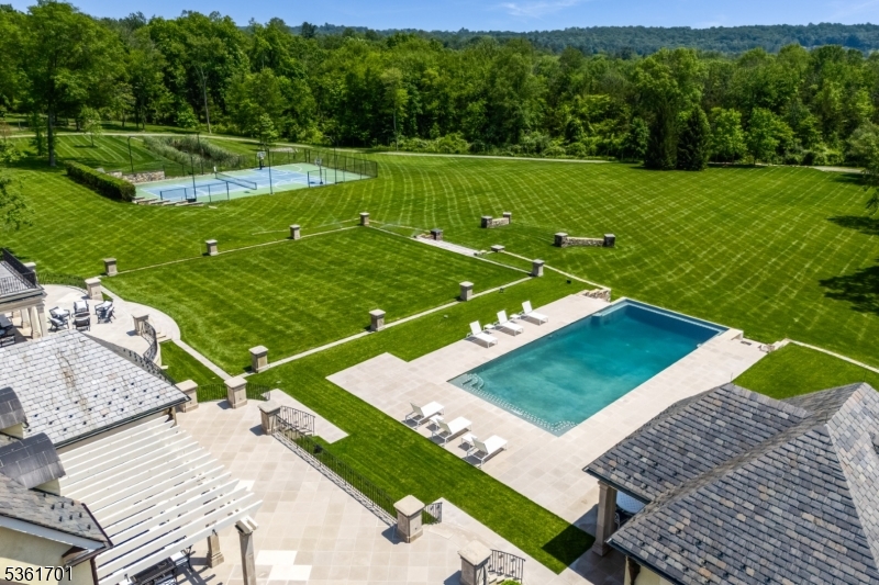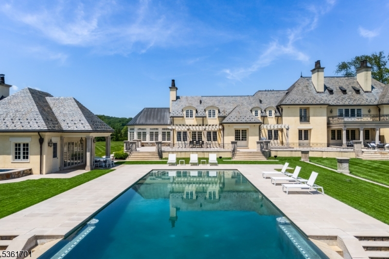 Discover the pinnacle of luxury living in this exquisite 6-bedroom French country estate, set on 11 unparalleled acres. Designed by Brandes Maselli and completed in '08, this architectural masterpiece underwent contemporary updates in 2023. Through a gated entry and winding drive, you will be greeted by the residence's stately stucco and slate facade. Step inside to a world of refined luxury, where custom architectural millwork, rich hardwood floors and limestone fireplaces elevate every space. The gourmet kitchen is a culinary masterpiece, perfectly situated to flow into light-filled living and dining spaces with custom mahogany French windows and doors. The 2nd level features a large in-law suite with private entrance. A fully finished lower level invites recreation and relaxation. The property's outdoor amenities rival those of a luxury resort with an expansive limestone patio, infinity-edge pool, spa, and notable pool house. A lighted sports court provides tennis and basketball, while a perimeter walking path winds through the landscape. The cottage features a kitchen/living room, bathroom and garage. The rear yard is designed for large-scale tented gatherings/events. Your peace of mind is secured by an automatic generator, irrigation, security system and zoned sound system. This extraordinary estate allows privacy while enjoying proximity to award-winning schools, equestrian facilities, world-class golf courses, upscale shopping and dining, highways and NJ Transit.