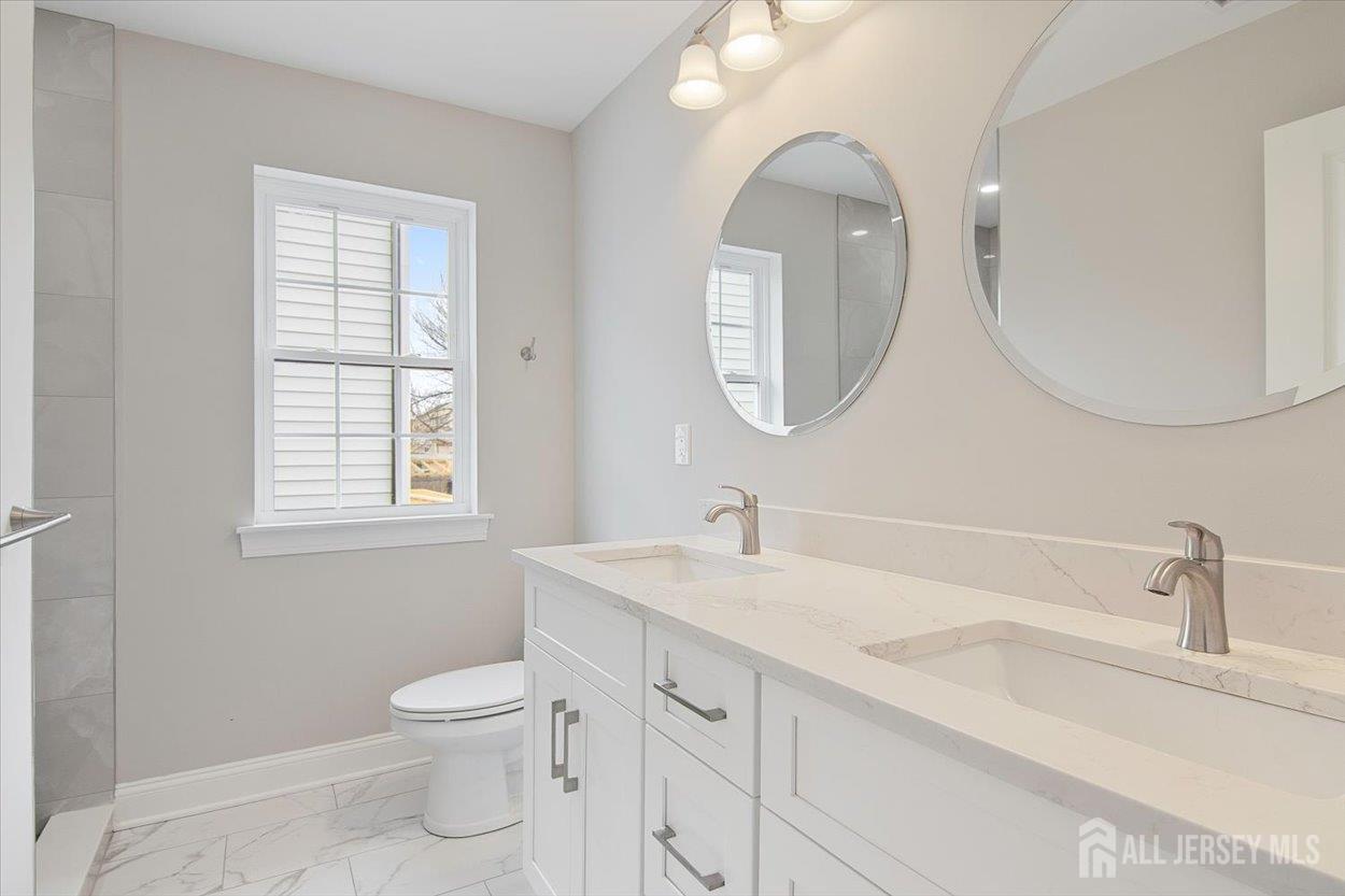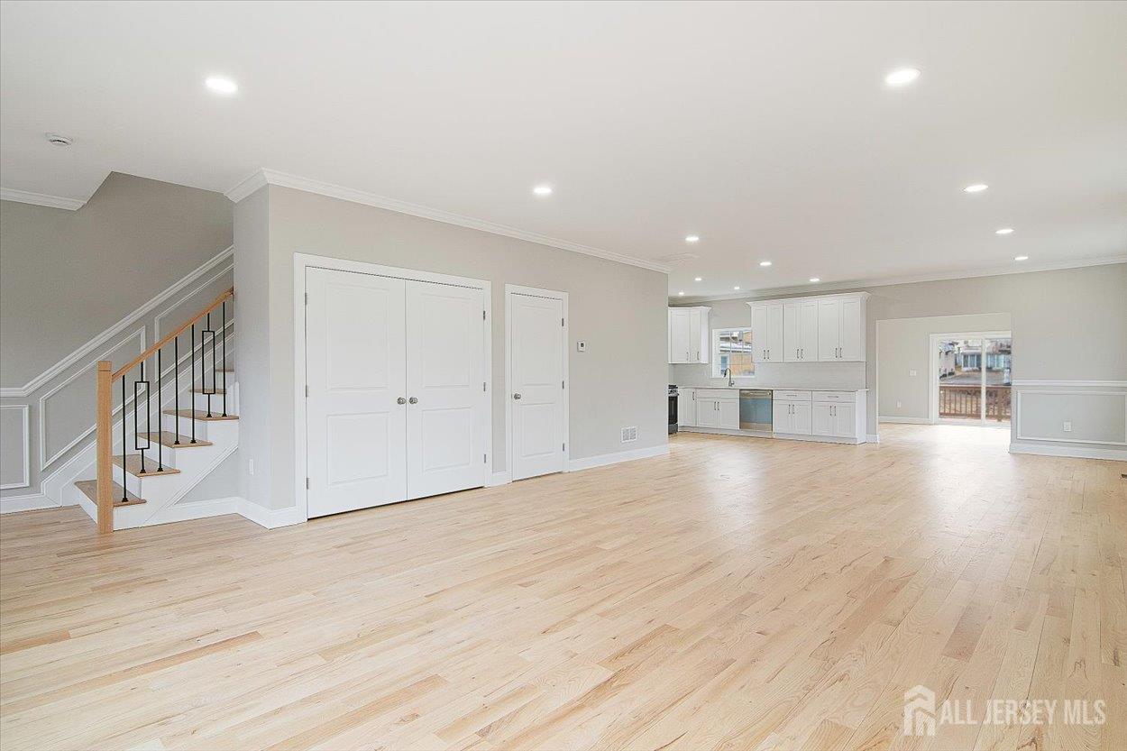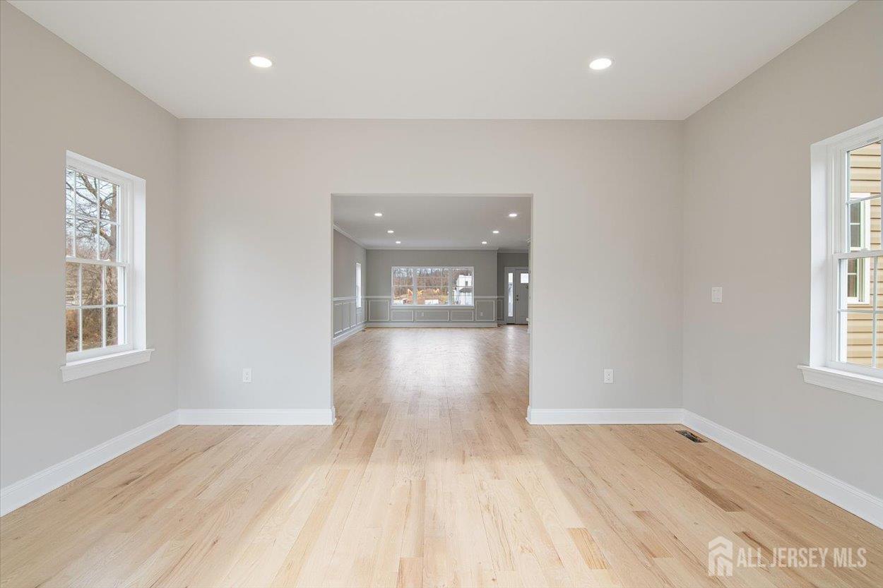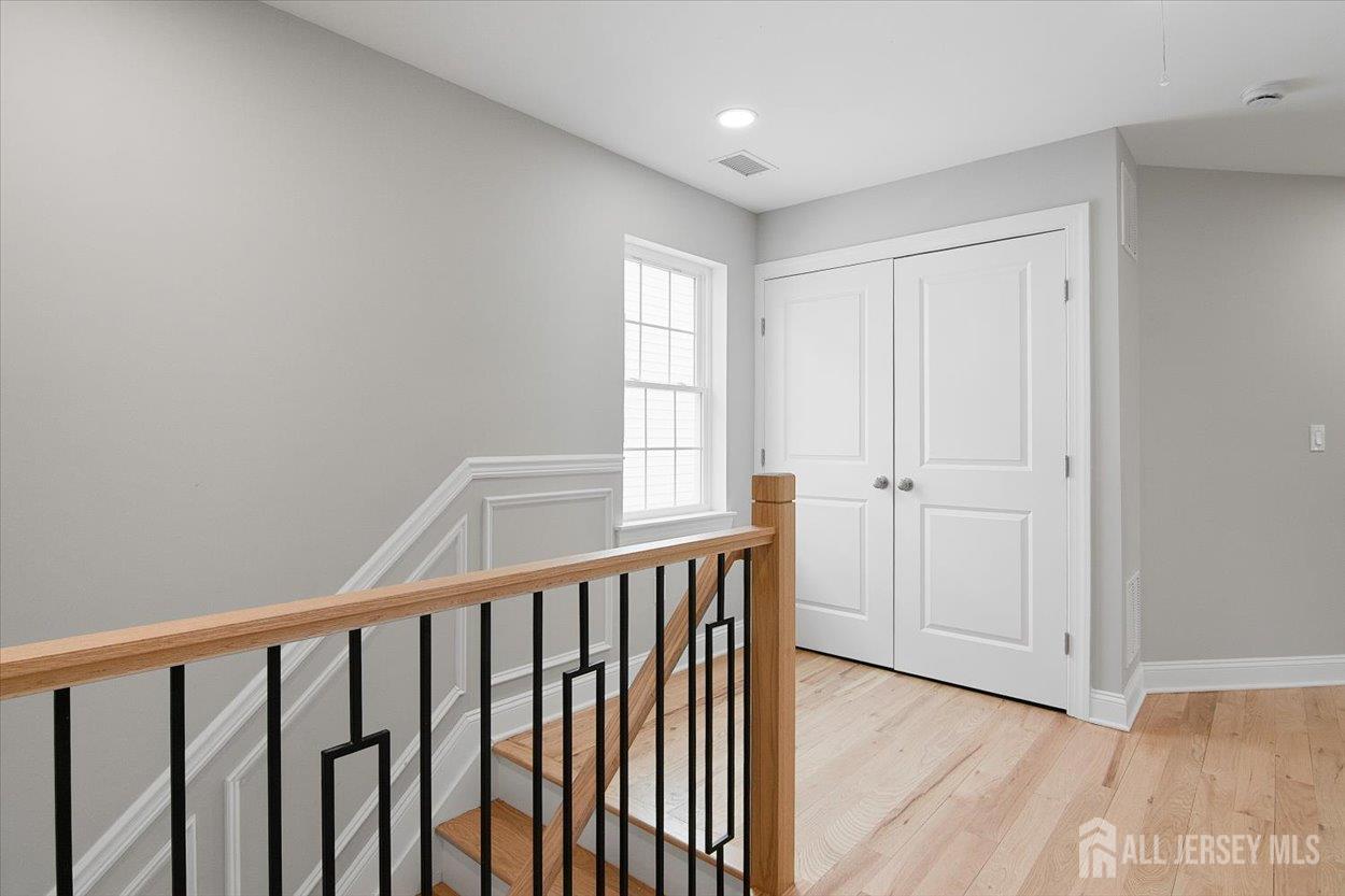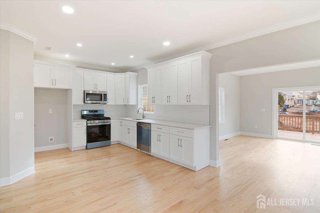 Beautiful Custom Colonial located on a no through street. This home features a spacious primary bedroom with a tray ceiling, WIC closet, and private bath complete with double sinks and a stand-up shower. Three additional bedrooms and a main bath with a tub/shower offer plenty of room for family or guests. Enjoy a bright and open eat-in kitchen boasting 42-inch cabinets, quartz countertops, stainless steel appliances, and a generous pantry. The first floor showcases 9-foot ceilings, decorative wainscoting, and an open-concept layout, all enhanced by gorgeous hardwood flooring throughout. Additional highlights include a 1-car attached garage with opener, recessed lighting, and multi-zone heating and central air for year-round comfort. The unfinished basement comes with rough plumbing for a future bathroom, offering great expansion potential. Outside, the property features a wooden deck, a fully fenced yard, and a complete landscape package. 10 yr home owners warranty included CJMLS 2607532R