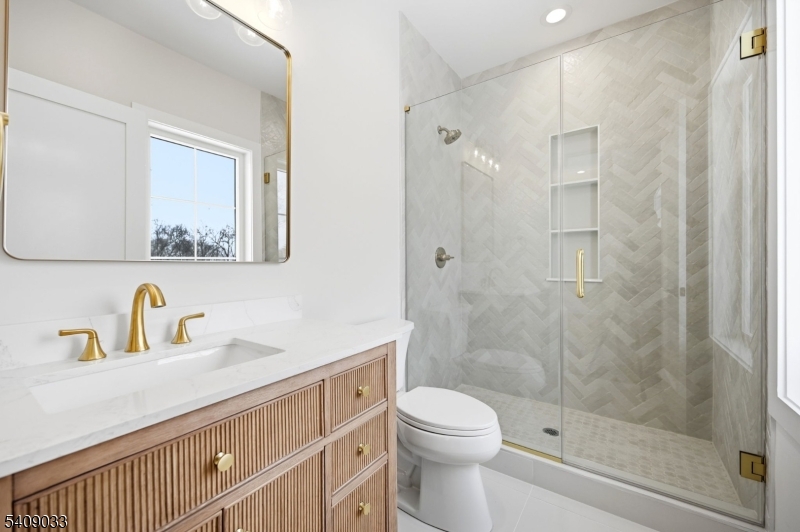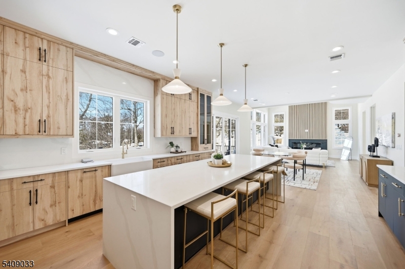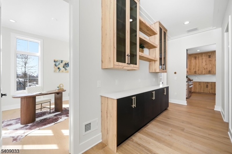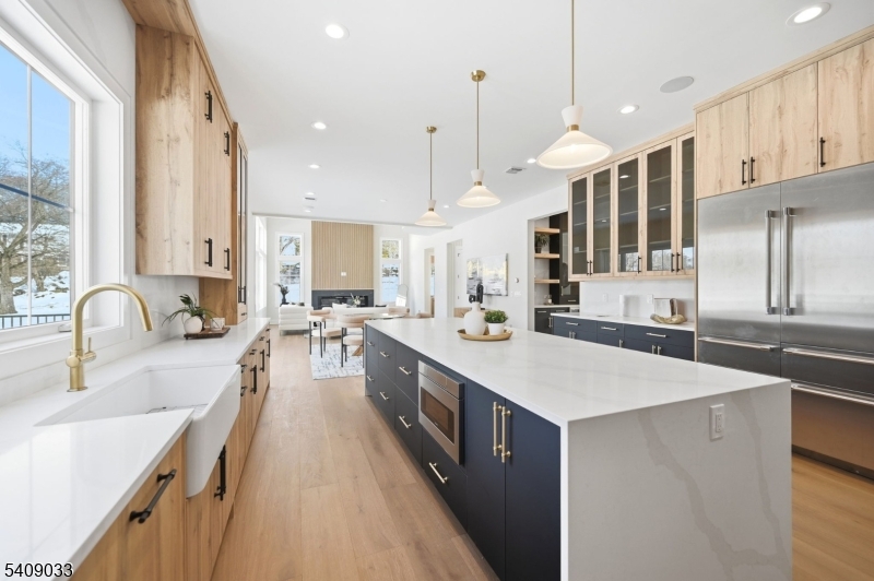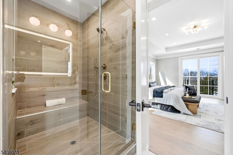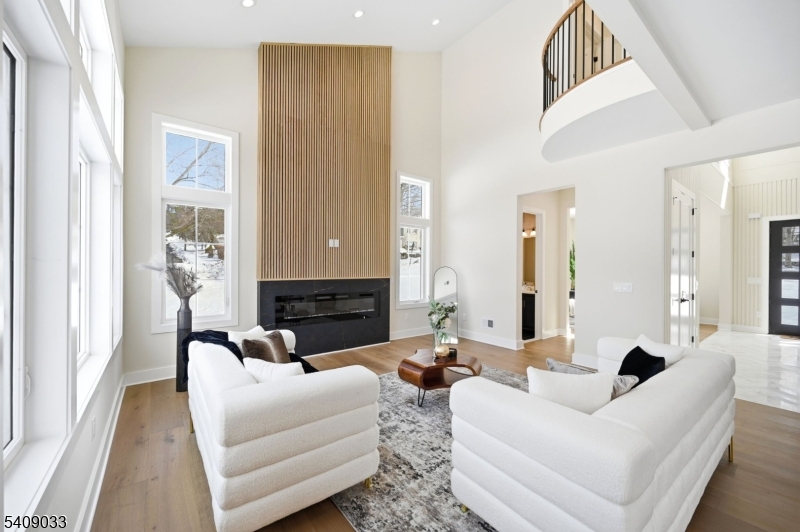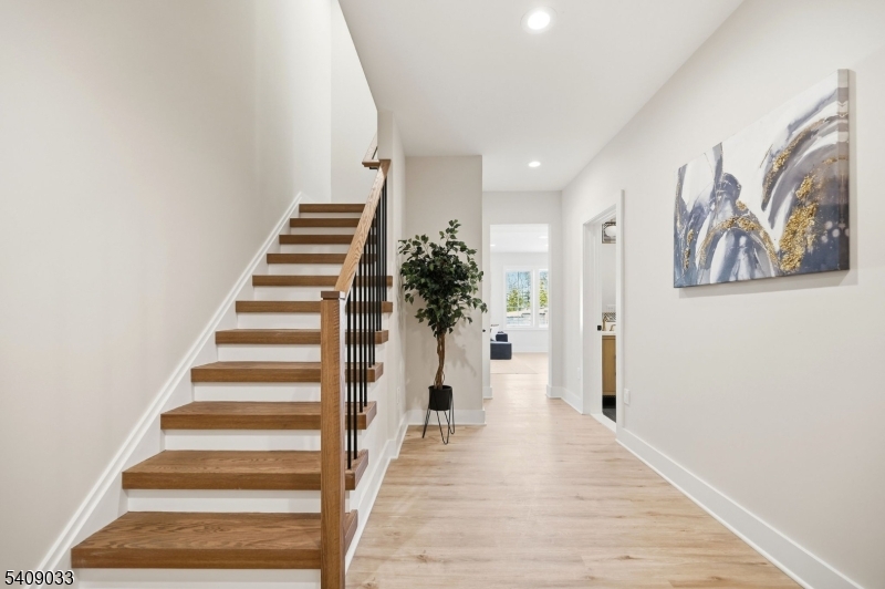 Modern Masterpiece with Timeless Curb Appeal. This exceptional NEW CONSTRUCTION Center Hall Colonial blends modern sophistication with classic architectural design in Livingstons prestigious Riker Hill section. Set on a flat 0.58-acre lot, this 6,500+ sq ft residence makes a striking first impression with its elegant stucco and stone facade. A grand two-story foyer with marble flooring introduces sun-filled interiors defined by clean lines, custom millwork, and refined finishes. The main level features formal living and dining rooms, a private office, custom mudroom, and a first-floor guest en-suite. The designer kitchen impresses with a waterfall quartz island, quartz backsplash, custom cabinetry, premium stainless steel appliances, walk-in pantry, and butler's pantry with wine cooler, flowing seamlessly into the dining area. The dramatic double-height family room with fireplace and built-in speakers opens to an expansive deck for effortless indoor-outdoor living. Upstairs, the primary suite offers two custom walk-in closets and a spa-like bath with soaking tub, dual vanities, and glass shower. Three additional en-suite bedrooms and laundry complete the level. The finished walk-out basement includes a recreation room, bar, fitness room, guest en-suite, and built-in speakers. A three-car EV-ready garage and a 10-year builder's warranty complete this feature-rich offering. GSMLS 4011732