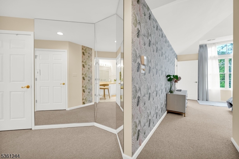 Welcome to this stunning 2-bedroom end-unit townhouse with a private elevator, located in the highly sought-after, gated Regency Club community offering 24-hour security and resort-style amenities. This open, sun-drenched home enjoys tranquil wooded views and features hardwood floors throughout the main level, rich moldings, and refined architectural details.The elegant living room boasts a dramatic cathedral ceiling, gas fireplace, and access to a private balcony perfect for relaxing or entertaining. The gourmet eat-in kitchen is a chef's dream, complete with a Viking range, custom cabinetry, and ample space for casual dining.The expansive primary suite offers multiple walk-in closets and a luxurious spa-like bath with double vanity, jetted soaking tub, and separate shower stall. A generous second-level loft overlooking the woods provides an ideal home office, studio, or bonus living space. Convenient main-level laundry adds to the home's thoughtful design.Residents enjoy exceptional community amenities including beautifully landscaped courtyards, an outdoor heated pool, clubhouse with fitness center, great room, billiards, and sauna. Ideally situated near top-rated schools, shopping, and convenient NYC transportation this home offers the perfect blend of comfort, luxury, and lifestyle. GSMLS 4011951