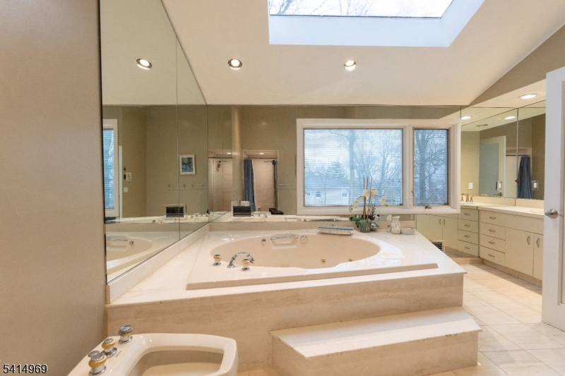 Experience the perfect blend of a Contemporary design, comfort, and resort-style living in this beautifully maintained home in one of Livingston's most desirable neighborhoods. Set on a generous corner lot, this residence offers spacious living across three finished levels. 5 bdrms and 5.5 baths, including a first-floor primary suite designed for comfort and privacy. The suite offers a walk-in closet and a spa-like bath with a Jacuzzi tub and separate shower, creating the perfect private retreat. The main level showcases an inviting open-concept LR and DR highlighted by vaulted ceilings, dramatic contemporary lines, and a wood-burning fireplace. A den and an additional first-floor bedroom provide flexible space for guests, work-from-home needs.. The kitchen features stainless steel appliances, including a Sub-Zero refrigerator. An oversized deck is ideal for outdoor dining and entertaining while overlooking the backyard. The 2nd level includes three additional bdrms with shared bath. 3rd bdrm features its own ensuite, providing comfort and privacy for guests. The finished lower level offers exceptional entertaining space with two versatile rooms, a full bath, and a wet bar, making it perfect for recreation. Sliding doors provide walk-out access to the backyard and in-ground pool, creating a seamless indoor-outdoor lifestyle. 3-car garage, multiple vaulted ceilings, spacious entertaining areas, and the pride of ownership throughout. GSMLS 4012683