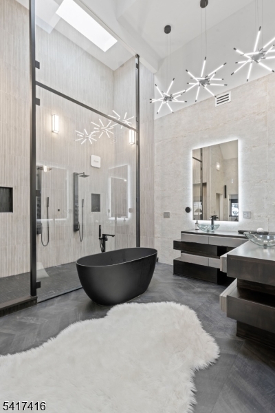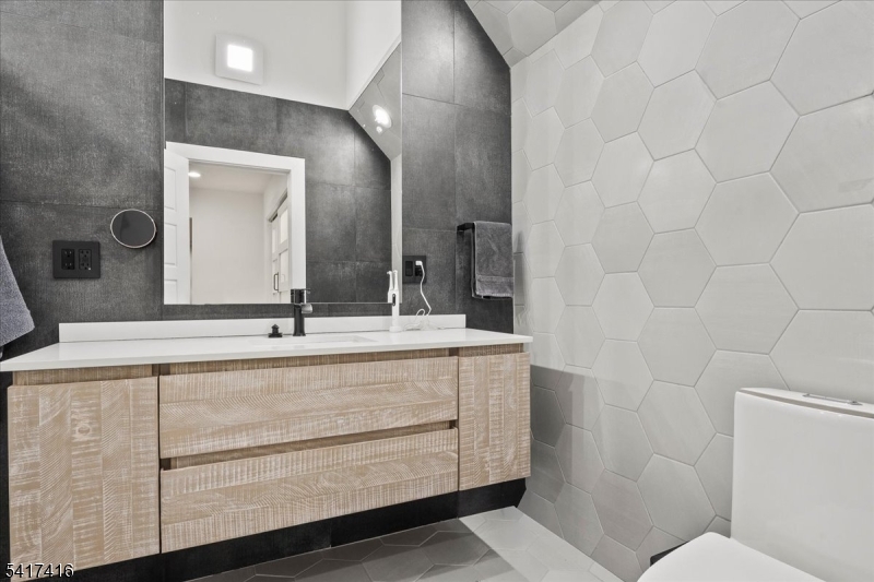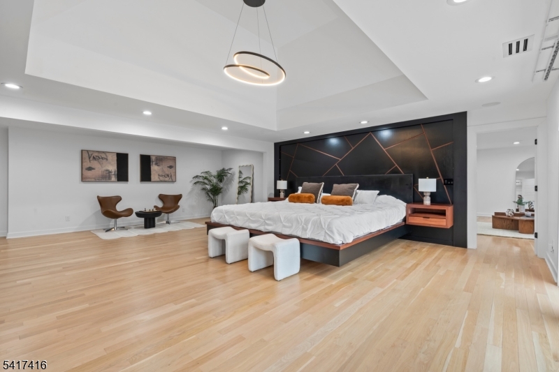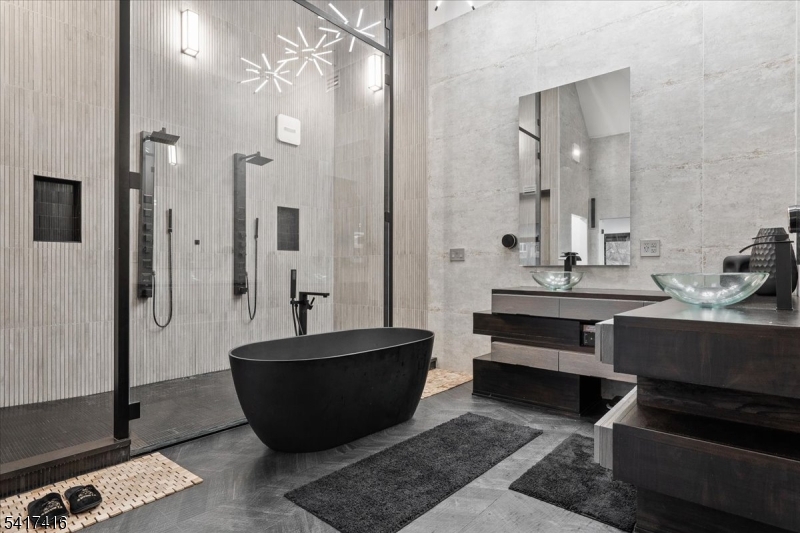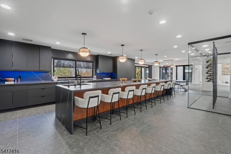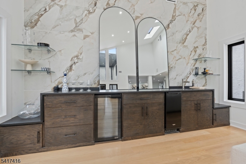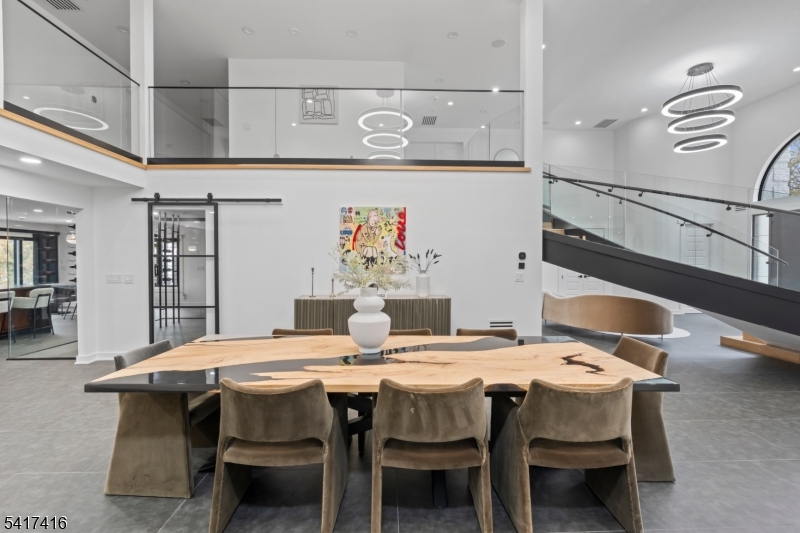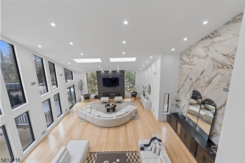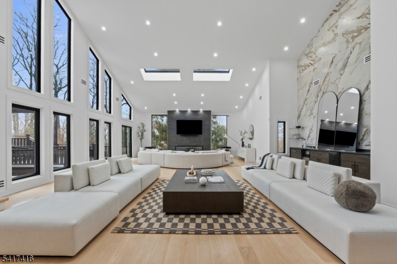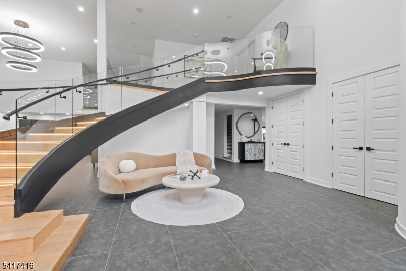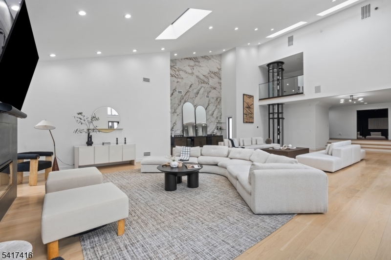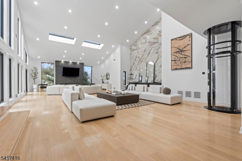 Elegantly designed Contemporary masterpiece showcasing exceptional craftsmanship and impressive scale throughout. A dramatic two-story entry foyer opens to a professionally designed curved glass staircase. Continue onto a soaring two-story living room with cathedral ceilings and an elevator that leads directly up into your 1400 sqft resort style primary suite. Custom moldings and quality hardwood floors enhance the home's refined character. The oversized, state-of-the-art eat-in kitchen is equipped with custom cabinetry, granite countertops, a 20ft. center island with sink, top-of-the-line appliances, a spacious breakfast area, butler's pantry, and built-in glass wine rack. Sliding glass doors lead to a private backyard with deck, ideal for indoor-outdoor entertaining. The expansive finished basement offers a second living space, bedroom suite, laundry room, and walk-out directly to backyard. Meticulous attention to detail throughout. Offering roughly 10,000 square feet of gracious living space, this exceptional residence is ideally located in the highly desirable neighborhood of Livingston, NJ. GSMLS 4014767