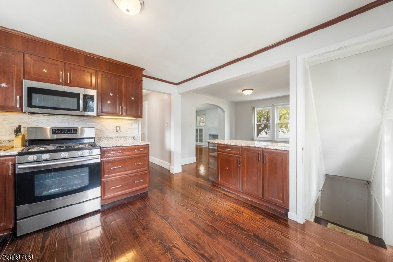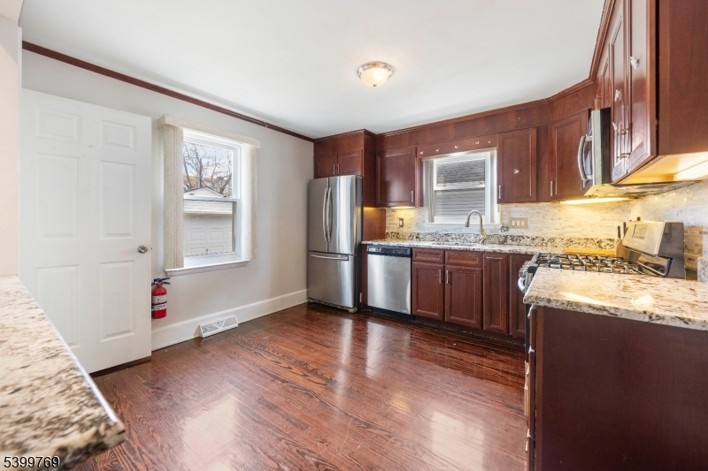 Welcome to 145 S 9th Ave in Manville, a well-maintained and thoughtfully updated 2 bedroom, 1 bath Cape Cod offering classic charm with modern convenience! The home invites you in with a traditional covered front porch, providing a comfortable spot to unwind and setting a warm first impression. Inside, you'll find a cozy living room featuring built-in shelving and a wood-burning fireplace. The layout flows into a dedicated dining room and updated kitchen equipped with granite countertops, ample cabinetry, and stainless steel appliances. A rear door leads directly to the backyard, making outdoor cooking and entertaining simple and convenient. The first floor also includes a well sized bedroom and a full bathroom, ideal for those seeking one-level living. Upstairs, the second bedroom offers privacy along with a spacious closet. Hardwood floors extend through much of the home, adding durability and timeless appeal. Downstairs, a finished partial basement provides additional space for an office or den along with abundant storage options. The home also features upgrades including solar panels and a Tesla electric car charger. The backyard offers a spacious, open setting with a patio suited for grilling, outdoor dining, or gardening. The property also includes a 1-car detached garage that adds parking, storage, or workshop potential. With its practical layout, key upgrades, and flexible living spaces, this home offers easy, move-in-ready living! GSMLS 4000214