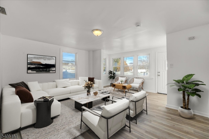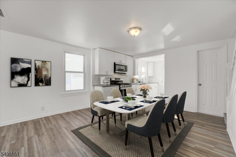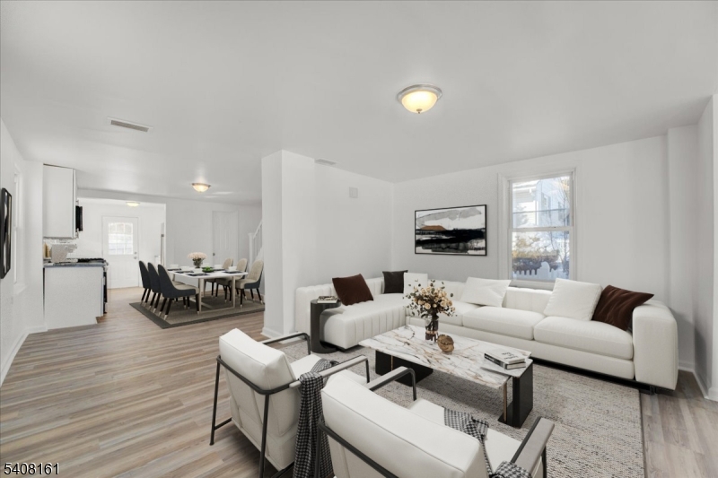 This well-maintained home offers a great combination of space, updates, and convenience. Inside, you'll find three comfortable bedrooms and an updated full bathroom located on the first floor. The white shaker kitchen is bright and modern, featuring quartz countertops, stainless steel appliances, and a crisp white backsplash, making it both stylish and functional. Vinyl flooring runs throughout the home, complemented by central air conditioning and forced hot air heating for year-round comfort. A huge walk-up attic provides excellent additional storage or potential usable space, while the full basement adds even more flexibility. The home is equipped with natural gas, an updated hot water heater, a newer roof and gutters, and solar panels for added efficiency.Outside, enjoy a good-sized backyard with a shed, perfect for storage or outdoor projects, along with a long driveway offering ample parking. Convenient access to both train and bus transportation to NYC makes commuting easy. This home presents a fantastic opportunity for buyers looking for space, updates, and accessibility in one complete package. Property is virtually staged. GSMLS 4007030