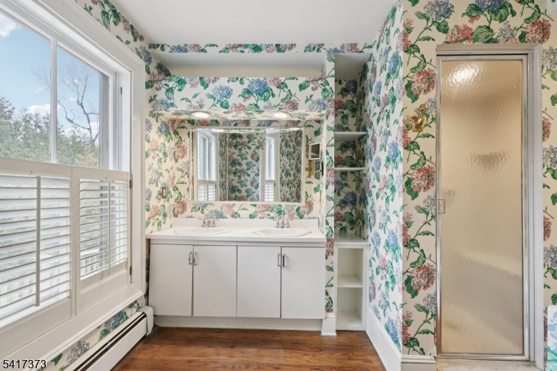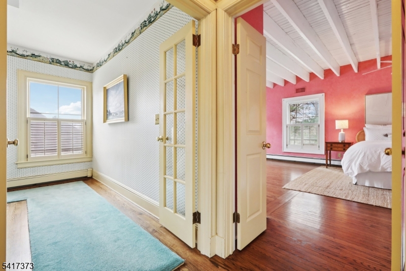 Rare chance to own a piece of Short Hills history. One of the earliest Short Hills post offices, expanded to over 3,100 sq ft with three bedrooms and two and a half bathrooms. This distinctive side-hall Colonial features hardwood floors, high ceilings, dental molding, plantation shutters, and a restored front stone archway with French doors welcoming abundant natural light. Formal living and dining rooms connect to an expansive 700+ sq ft kitchen and family room with cathedral-beamed ceiling, wood-burning fireplace, oversized windows, and French doors opening to a private paver patio. Second-floor primary suite with multiple closets and en-suite bath. Third floor includes two bedrooms and a hall bath. Covered breezeway to detached 2-car garage. Unique opportunity to update and customize this historic property. Includes 3D walkthrough, video tour, and floor plans. Located approx. 350 ft to the Short Hills train station on NJ Transit's Midtown Direct line with service to Penn Station. Located in the Short Hills Park Historic District. GSMLS 4014999