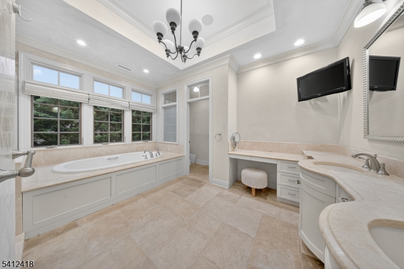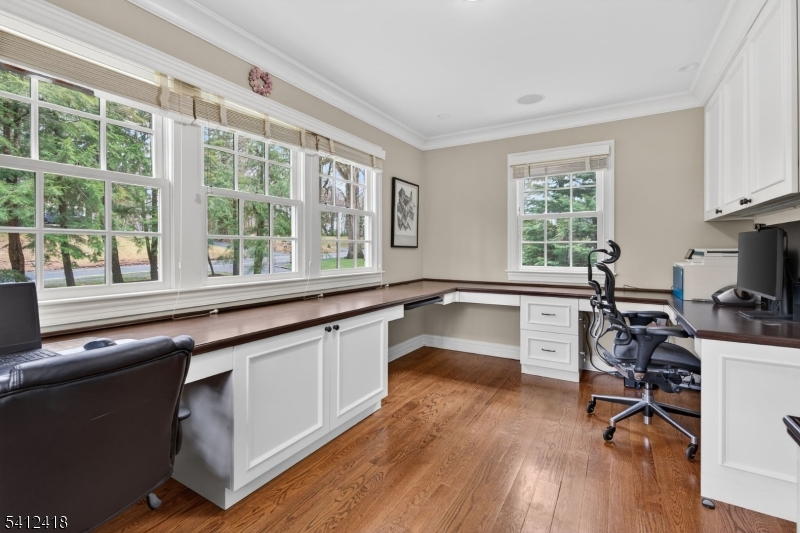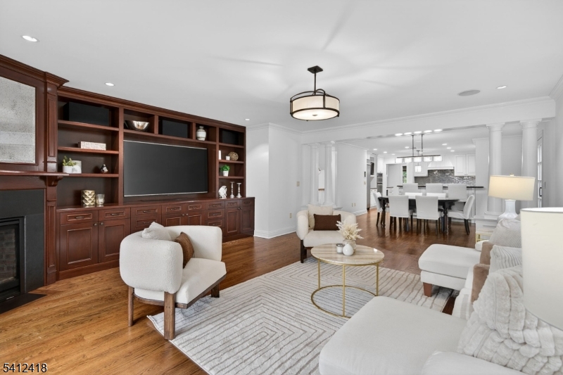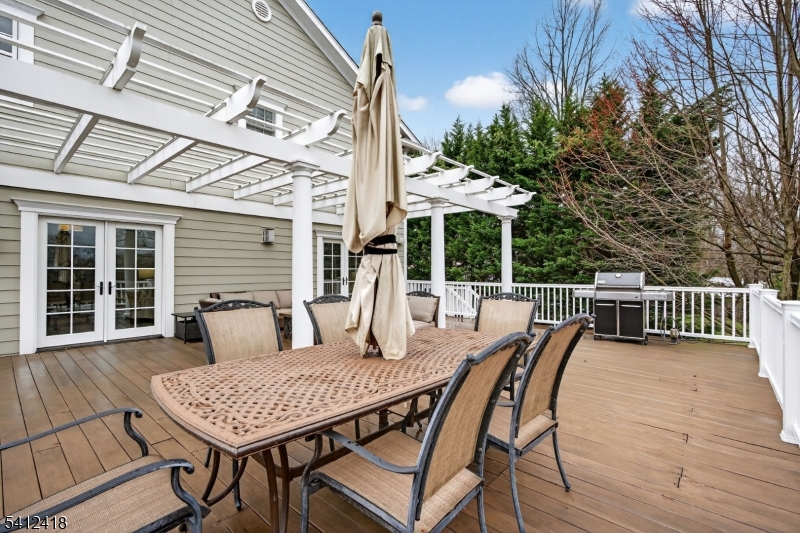 Timeless elegance meets modern sophistication in this stunning custom Colonial built in 2009, ideally located in the desirable Poets Section of Short Hills. Thoughtfully designed across 3 spacious levels, this home blends luxurious finishes with everyday functionality. Enter through the grand foyer with hardwood floors and crown molding to the living and dining rooms showcasing herringbone flooring, custom millwork and built-in audio. The chef's eat-in kitchen features custom cabinetry, quartz countertops, premium stainless steel appliances and a center island, flowing seamlessly into the breakfast area and inviting family room with built-ins, gas fireplace and surround sound. Step outside to a maintenance-free deck with pergola, outdoor speakers, lighting and natural gas grill ideal for indoor-outdoor living. A private office with custom workstations and powder room complete main level. Upstairs, the primary suite offers a vaulted ceiling, dual walk-in closets + a spa-like bath with soaking tub, multi-head shower and luxurious finishes. 3 additional bedrooms including a junior suite + a hall bath and convenient laundry room. The lower level provides a recreation room, exercise space, full bath, mudroom + access to oversized 2-car garage. Smart home features in most of home include audio, security system, generator, multi-zone HVAC and integrated controls. Close to top-rated schools, parks, shopping + NYC transit, this home offers the perfect blend of comfort and convenience. GSMLS 4015401