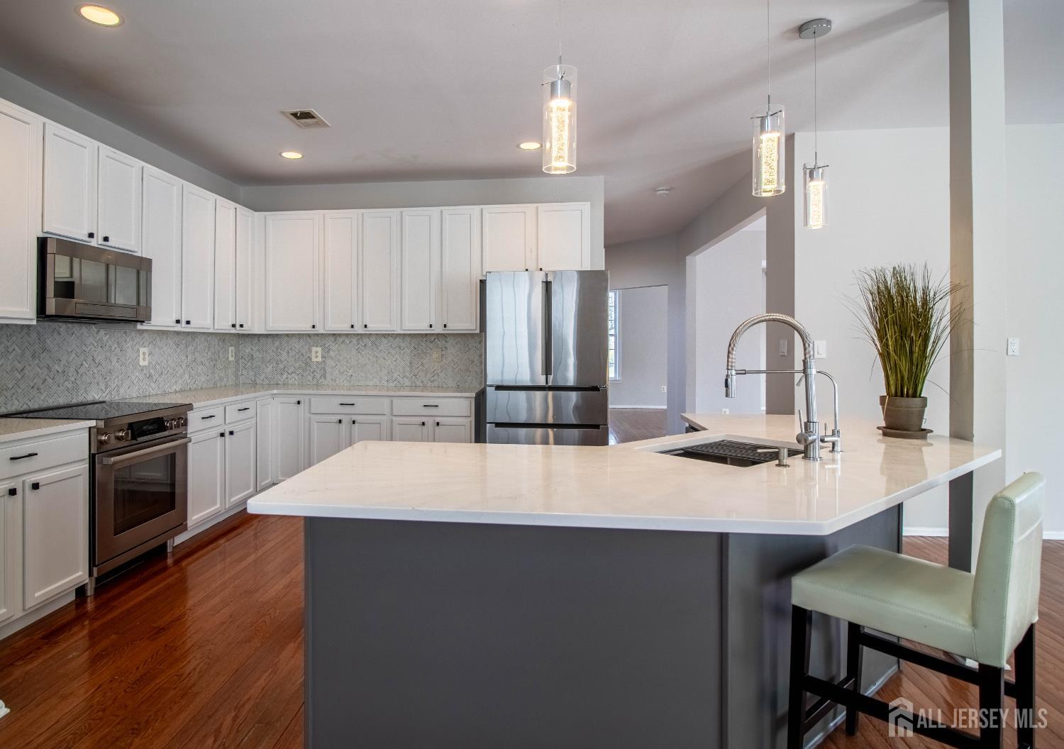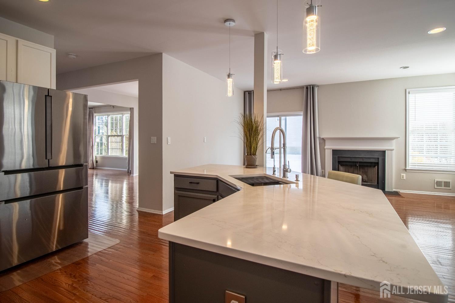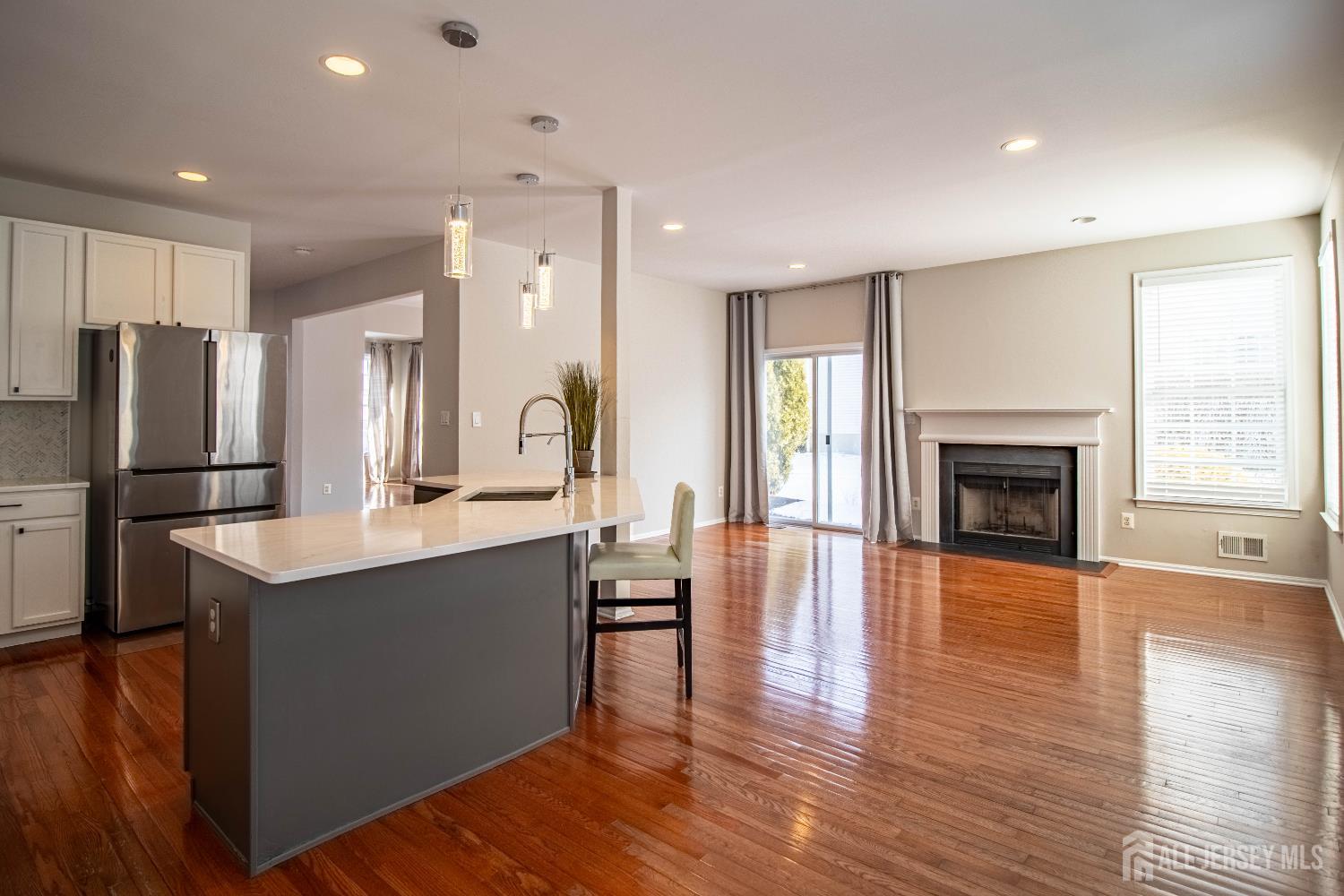 Welcome to this stunning 5 bedroom, 2.5 bath colonial situated on a desirable corner lot in the sought-after Forsgate Hills development. This beautifully maintained home offers a perfect blend of classic charm and modern updates, featuring hardwood floors, recessed lighting, and abundant natural light throughout. The updated kitchen showcases quartz countertops and stainless steel appliances, ideal for everyday living and entertaining. Relax in the inviting family room with a cozy wood-burning fireplace. The fully finished basement provides versatile additional space. Property has outdoor sprinkler system. Conveniently located near major routes, shopping, and dining, this exceptional home offers comfort, style, and location all in one. CJMLS 2609832R