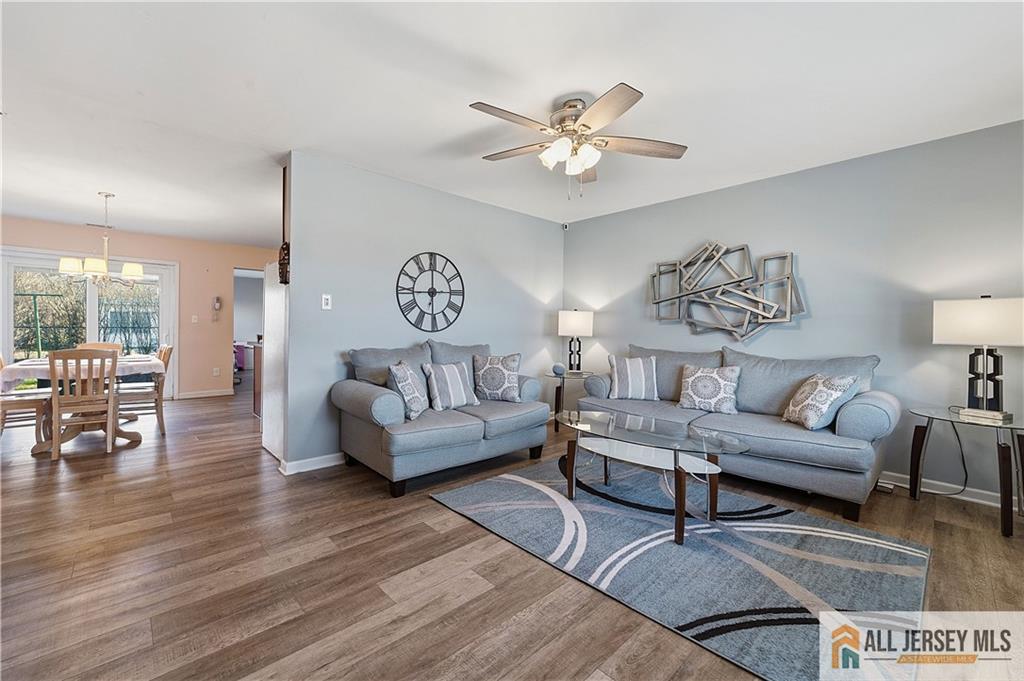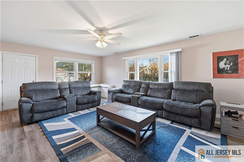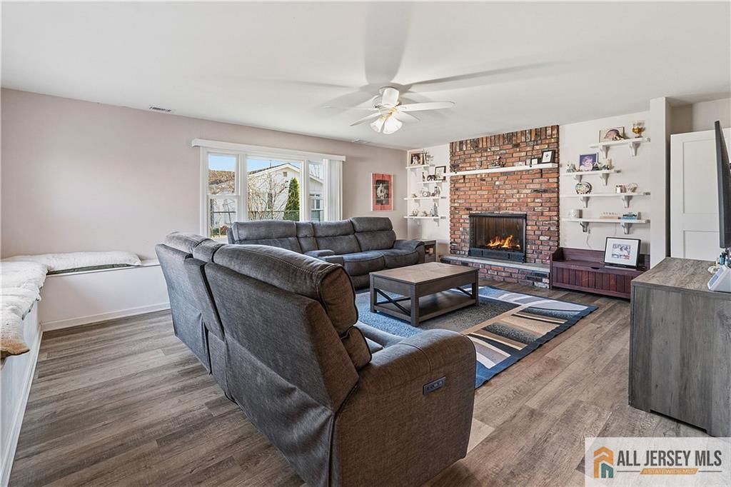 Follow the paver walkway as it guides you home to this inviting 3-bedroom, 2 full bath ranch nestled in the sought-after Mill Lake Manor community. A covered front porch welcomes youa perfect spot to enjoy your morning coffee or unwind at the end of the day. Step inside and you're greeted by a sun-filled formal living room, where a large picture window brings in natural light and a ceiling fan adds comfort year-round. A convenient coat closet sits just inside, and the space flows effortlessly into the formal dining roomideal for gatherings both big and small. From here, sliding glass doors invite you outside to the patio and backyard, creating an easy indoor-outdoor lifestyle. The heart of the home is the beautifully updated eat-in kitchen, thoughtfully designed with a breakfast bar for casual meals, abundant cabinetry including a pantry, 42-inch upper cabinets, and a sleek glass backsplash. Open to the kitchen is a stunning, oversized family room additionperfect for relaxing or entertaining. Here, a gas-burning fireplace with a classic brick surround anchors the space, while generous windows with charming window seats fill the room with warmth and light. A door leads directly to the patio, making summer gatherings a breeze. Just beyond, the laundry room features a modern tankless hot water heater and leads into a versatile office space with its own private entrance to the yardideal for working from home, a creative studio, or even a guest retreat. At the end of the day, retreat to the primary suite, complete with a ceiling fan, an oversized closet, and a private en suite bath featuring a newer vanity and glass-enclosed shower. Two additional bedrooms offer comfortable accommodations, each with ceiling fans and spacious closets. The main bath is designed for relaxation, boasting a jacuzzi tub and double sink vanity. A one-car garage adds convenience, while the location truly shinesset within the highly regarded Monroe school system, offering an easy commute to NYC, and just minutes from Route 18's shopping and dining. This home has been immaculately maintained and thoughtfully updated--pride of ownership! This home isn't just a place to liveit's a place to settle in, make memories, and truly feel at home. CJMLS 2661522M