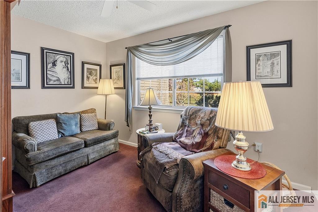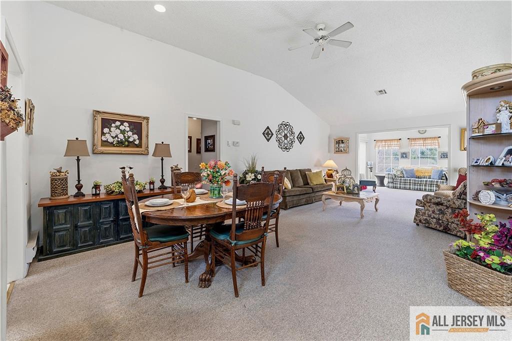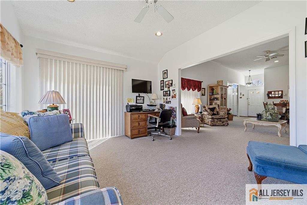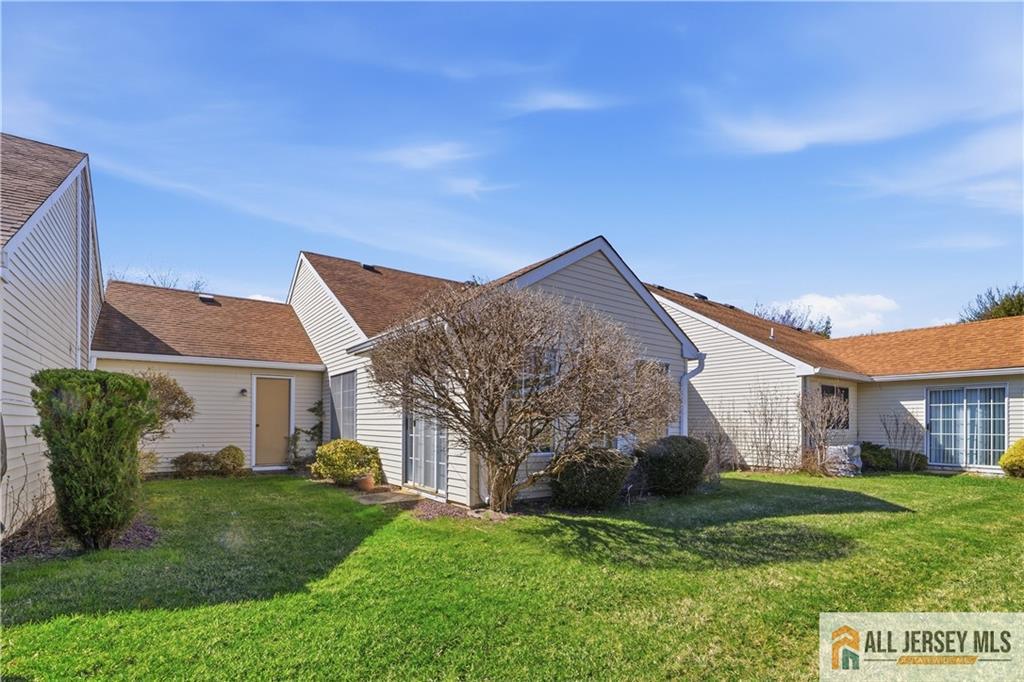 Welcome home to this beautifully maintained Dexter model in the highly sought-after Clearbrook 55+ community, offering comfort, space, and easy one-level living. Step inside through the inviting front door with transom window into a bright and welcoming foyer featuring a convenient double coat closet. The spacious living and dining area is perfect for everyday living and entertaining, complete with recessed lighting, carpeting, a ceiling fan, and a vaulted ceiling that adds an open, airy feel. The sunroom is a standout featureboasting a vaulted ceiling, ceiling fan, recessed lighting, and two sliders that fill the space with natural light and provide easy access to the outdoors. Enjoy a large grassy area behind the home, offering privacy and a peaceful setting. The kitchen features a vaulted ceiling, stainless steel appliances, a built-in microwave, and a window over the sink for added natural light. The primary bedroom offers comfort and convenience with a ceiling fan, ample space, and an en suite bath featuring a large shower, updated grout work, and a vanity with storage and a medicine cabinet. A second bedroom includes a ceiling fan, large closet, and a big picture window. Additional highlights include a main bath with tub/shower, vanity, and medicine cabinet, as well as a laundry area with shelving for extra storage. The home also features a one-car garage with direct access to the yard. Enjoy resort-style living in Clearbrook with access to golf, pools, clubhouse, and endless activitiesall in a prime location close to shopping, dining, and major roadways. CJMLS 2661574M