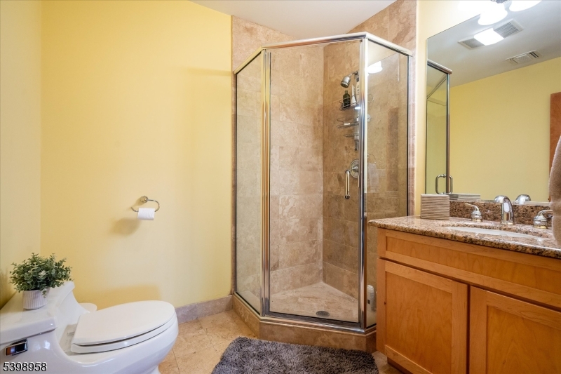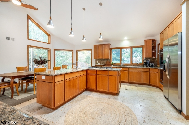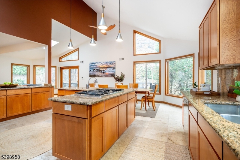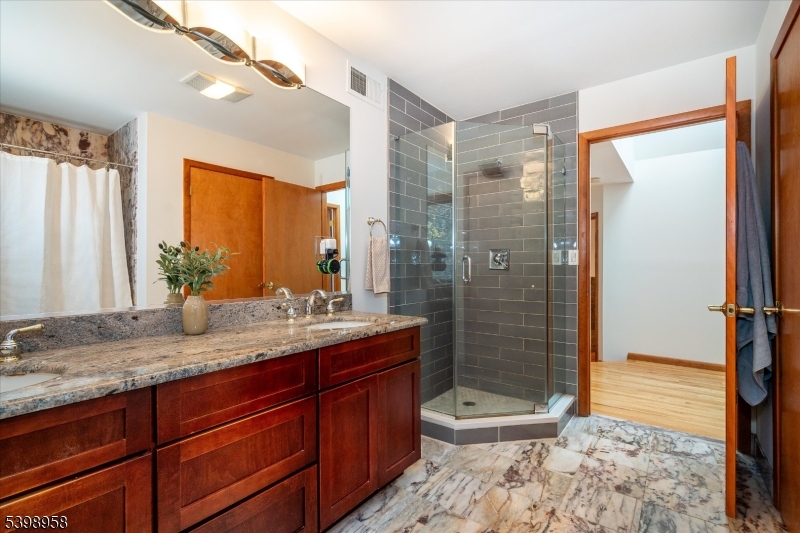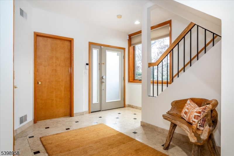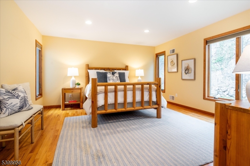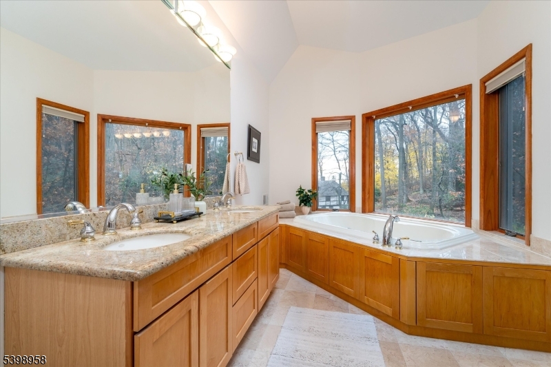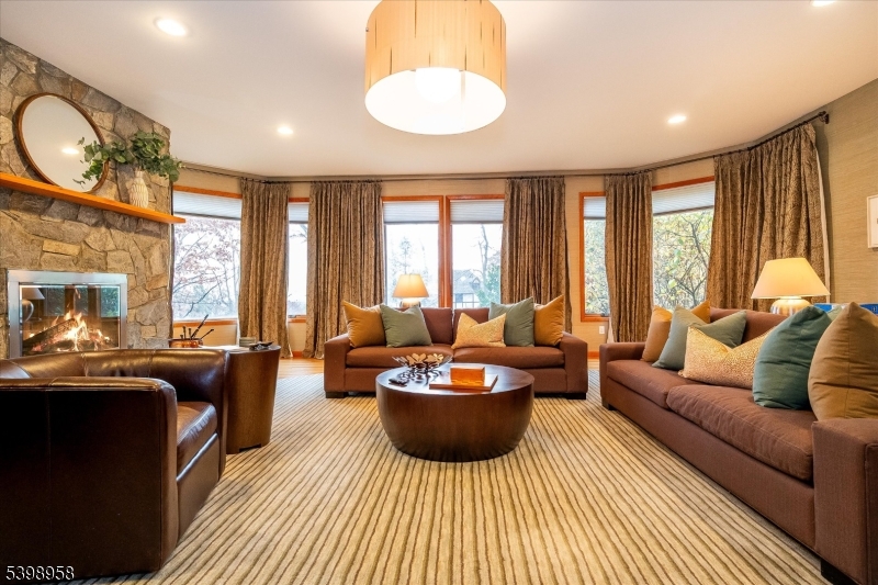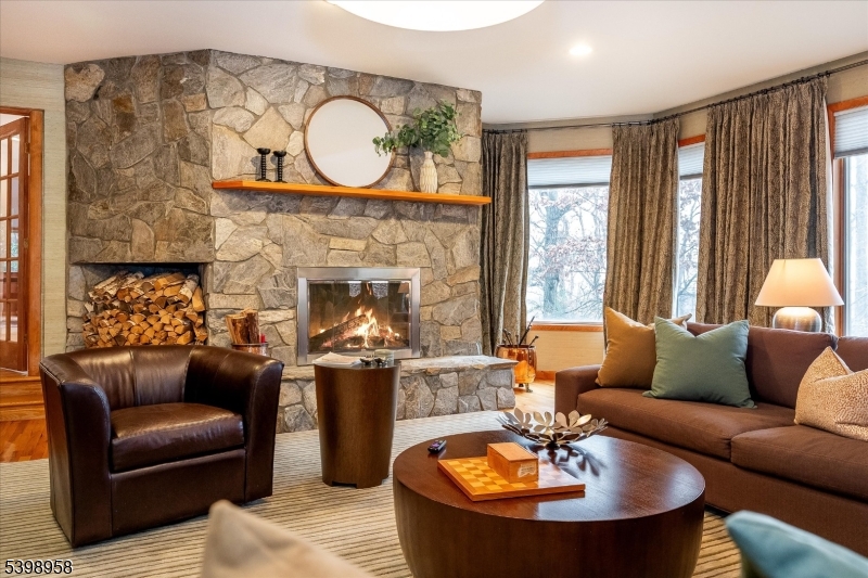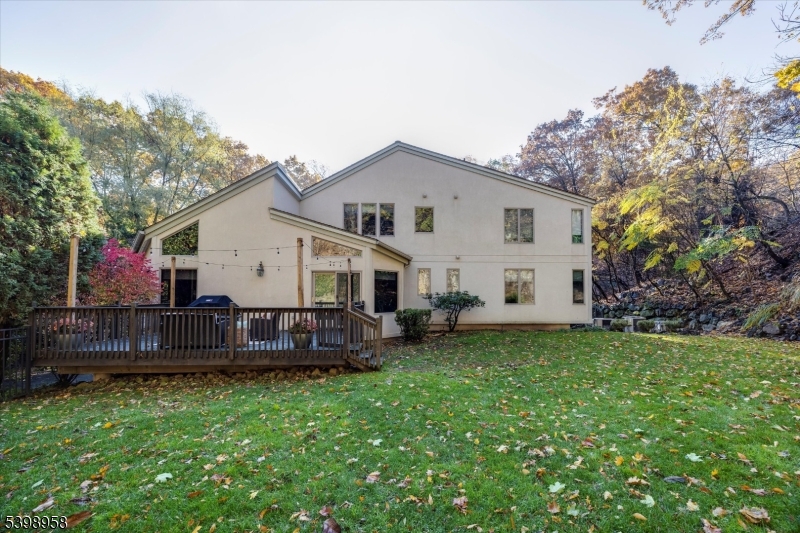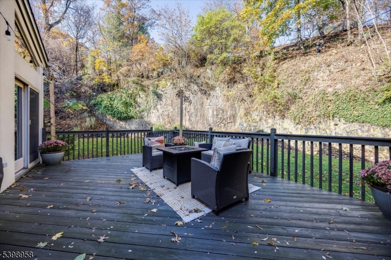 Don't miss this special contemporary home offering seasonal NYC views set on a secluded, private lot so close to vibrant Upper Montclair Village. Oversized windows and several skylights flood the home with natural light. The ground floor offers versatile living space with large rec room or guest suite with fireplace, full bath, gym, laundry and garage access. 1st floor offers an open floor plan with eat-in kitchen and family room leading out to an outdoor deck, incredible for entertaining or just relaxing; a formal dining room, large living room with stone fireplace and outdoor another deck, powder room, bedroom with ensuite bath. 2nd floor has 2 bedrooms, hall bath and the primary suite featuring a bath with double sinks, a spa-like tub, shower, make up counter, 2 walk-in closets and a gas-fireplace. Additionally, on the 3rd floor you'll find an office or den plus storage. Some notable updates and features include a high ceilings, whole house generator, roof and skylights replaced in 2019 , 3 zone central air, sprinkler system, dumb waiter from kitchen to garage and laundry chute. Close to Upper Montclair Village with restaurants, movie theatre, shops, supermarkets and NYC direct train. GSMLS 3999413