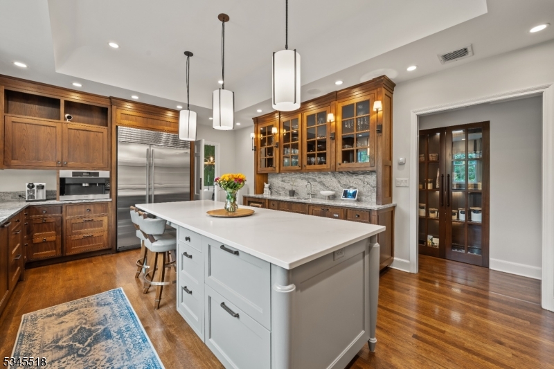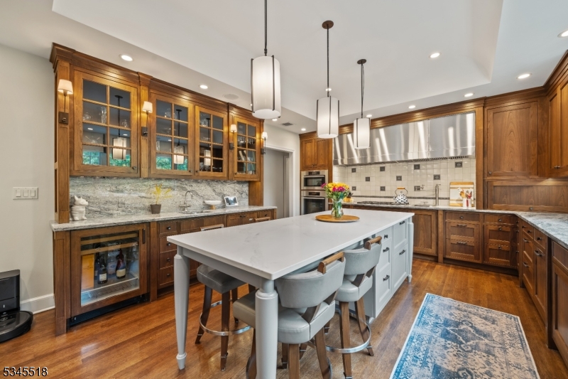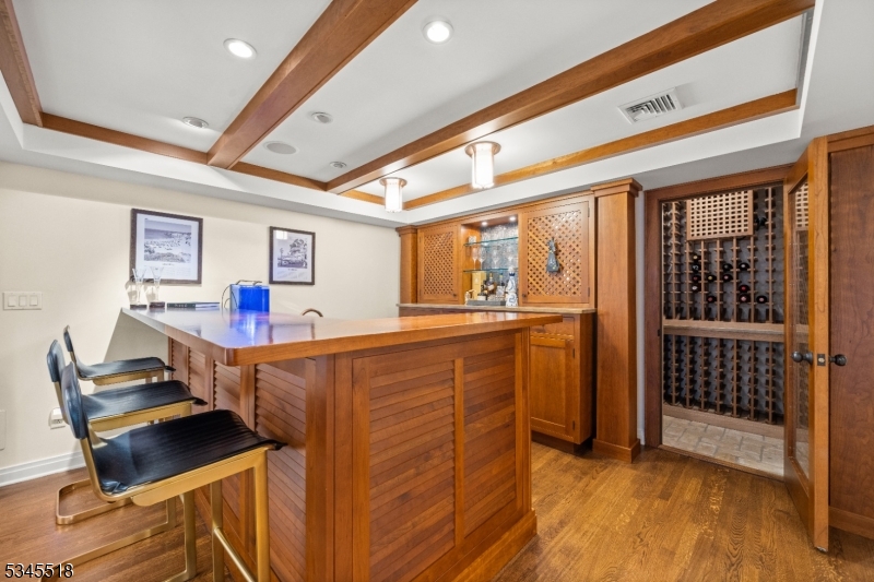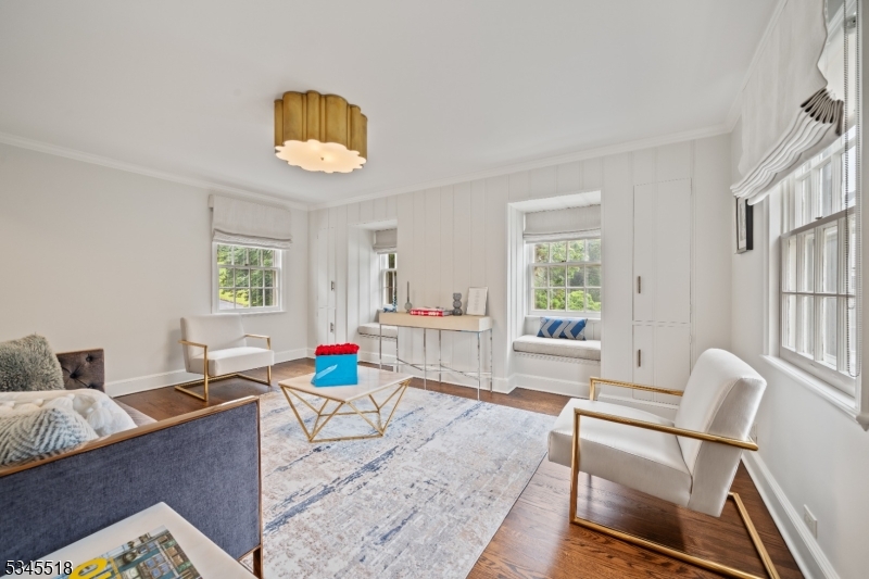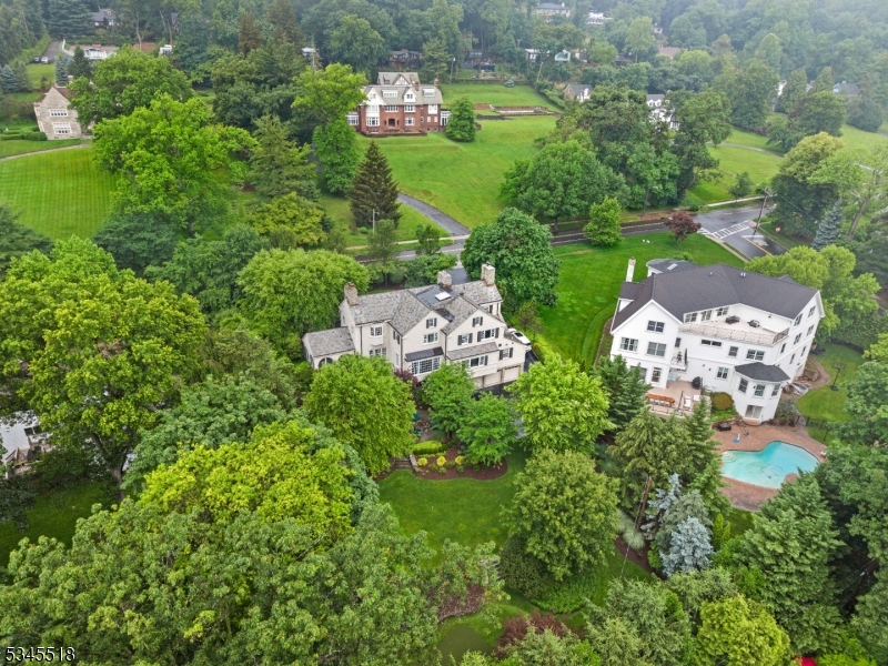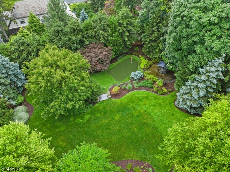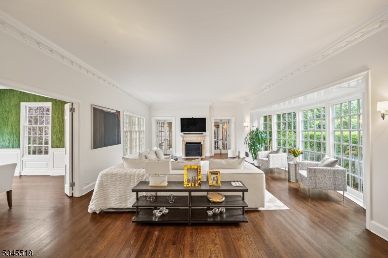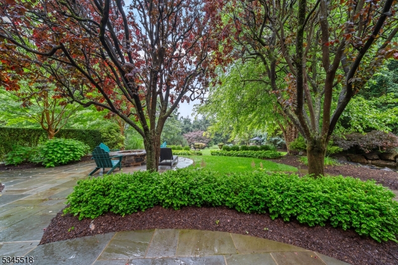 This exceptional home seamlessly blends classic Hollywood glamour with modern luxury. Set on a stunning property with NYC views, the estate includes a lush lawn, koi pond, terraced patios, firepit, and a putting green. The first floor greets you with a grand foyer, featuring a sweeping staircase and a contemporary chandelier. A sunken living room with a fireplace, a wood-paneled library with built-ins and its own fireplace, and a formal dining room flow into a serene 3-season "Florida room. Hardwood floors, intricate moldings, and expansive windows throughout add warmth, while modern finishes and comforts elevate the space. The chef's kitchen is outfitted with top-tier appliances, and a first-floor nanny suite, radiant floor heating, multi-zone AC, and a sound system offer both luxury and convenience. The second floor showcases a skylight, the primary suite with an ensuite bath, custom closet, and a second bedroom converted to a dressing room. Three additional spacious bedrooms and two updated bathrooms complete the floor. The lower level is perfect for entertaining, with a family room, wood-paneled wet bar, climate-controlled wine closet, exercise room, and billiards room that leads to a terrace ideal for alfresco dining. The home features a Vermont slate roof, alarm system, irrigation, and perimeter drainage, offering worry-free living, all just a short distance from the direct NYC train. GSMLS 4000365
