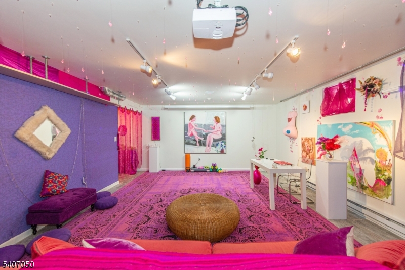 Set high on a hill, this 4-bed, 2.1 contemporary colonial with an attached 2-car garage supports daily life efficiently and scales easily for entertaining with its versatile, elegant layout. The open-concept living room and EIK boasts glass sliders to a large moonstone patio with outdoor kitchen and spacious landscaped backyard, perfect for entertaining! The fully-loaded EIK, with access to the garage and basement, has pendant lights, SS appliances, a hooded cook's stove, a center island with quartz counters, wine fridge and more. On the 1st floor there are also rooms that function as multi-purpose spaces, including an office and den. The full, finished basement, which has been used as an art gallery, currently functions as a home theater and spa room, and has ample built-in storage. On the 2nd floor, there are 4 generous bedrooms, including a primary with track lighting, and an ensuite bath with quartz- topped double sinks, shower and supplemental heating. A spacious dressing room with laundry and a hall guest bath with tub/shower complete the 2nd floor. A pull-down attic offers additional storage. Set on over half an acre, the private backyard with outdoor kitchen and top-line hot tub is adorned with native plant gardens, mature trees, and layered lighting, creating privacy and a sense of calm without demanding heavy upkeep. Custom built in 2014, this gracious home, with easy access to NYC transport and all the culture Montclair has to offer, is truly a rare find! GSMLS 4006520