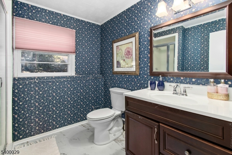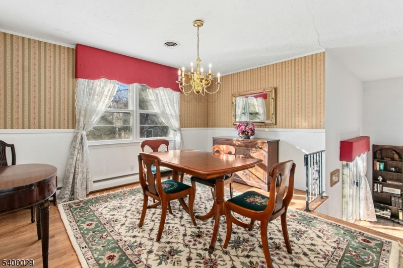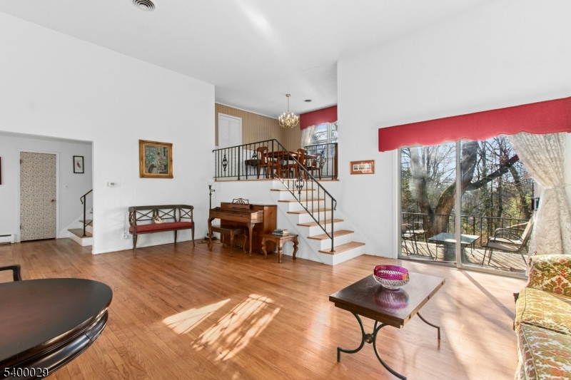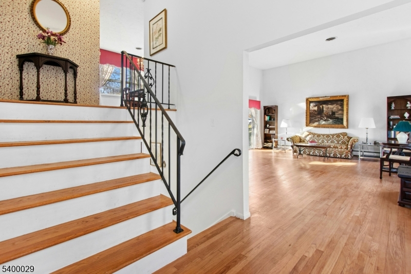 This spacious 4-bed, 3-bath split-level sits on a sunny .42-acre corner lot and offers flexible living for today's needs, including excellent MOTHER/DAUGHTER potential. Step inside to a dramatic great room with a cathedral ceiling and hardwood floors, opening directly to a private back terrace; an ideal setting for relaxing or entertaining. Just above, an elegant mezzanine-level formal dining room with hw floors overlooks the great room, creating a bright, open connection between the main living spaces. The eat-in kitchen sits adjacent and features a convenient secondary staircase leading down to the ground-level family room.The second floor featurs three bedrooms with hw floors and generous closet space, and two full baths, including a spacious primary en-suite. The ground level adds a fourth bedroom, full bath, family room, and a mud/laundry room with direct access to the garage and side entrance. A finished basement offers even more recreation and storage options. Outdoor highlights include an inviting front porch, rear terrace, and a large sun-filled side yard all minutes from the scenic Watchung Reservation. Discover exceptional living in highly desirable Mountainside, celebrated for its top-rated schools, including Deerfield, a Blue Ribbon School, and multiple commuting options just 22 miles from Manhattan. GSMLS 4000463
