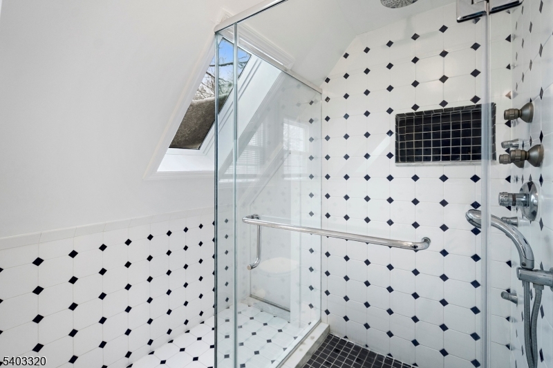 Perched on a hill along New Providence Road, this two-story ranch offers strong curb appeal, visibility, and a spacious property in desirable Mountainside. A covered front porch welcomes you home perfect for morning coffee or relaxing outdoors.Inside, the large living room features wood flooring, large windows for natural light, and a stone wall with a wood-burning fireplace. The adjacent kitchen is equipped with stainless steel appliances including a Wolf gas range with hood fan, granite countertops, pantry storage, and a separate dining area. A formal dining room with wood flooring sits just off the kitchen and living room, ideal for entertaining.The dining room opens to a spacious family room with a second wood-burning fireplace, wet bar, full bathroom, and sliders leading to a private patio and deck. All five bedrooms are located on the second floor. The primary suite features a walk-in cedar closet and full bath with shower stall. One adjoining bedroom is currently used as additional closet space and can easily be restored. The remaining four bedrooms are generously sized and share a full hallway bath.The finished basement provides flexible space for recreation, office, or gym, along with a laundry room and half bath. Exterior highlights include a private side yard, storage shed, attached two-car garage, and paver parking near the garage for additional off-street parking. Conveniently located near downtown Westfield, NYC train access, and nearby parks and trails. GSMLS 4003019