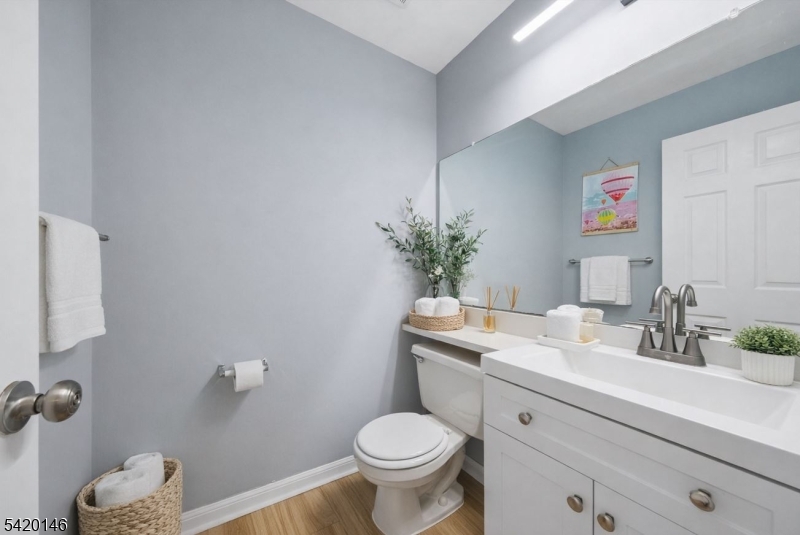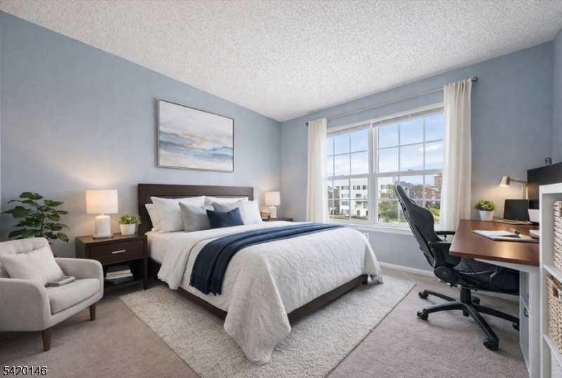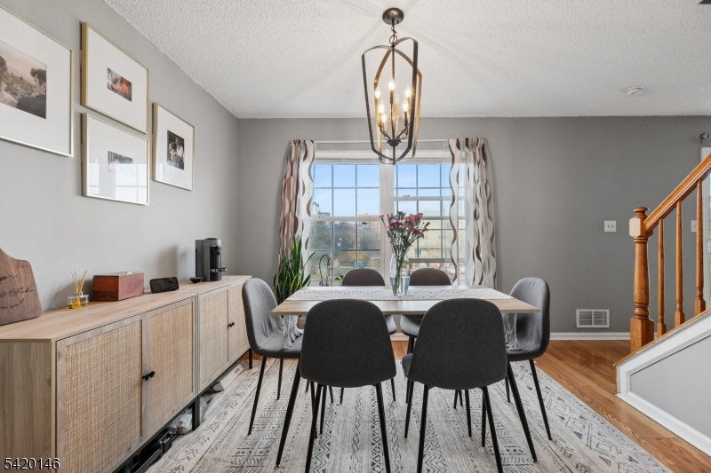 Impeccably maintained 2-bedroom, 1.5-bath townhouse located in the sought after Society Hill community of Newark NJ. The lower level comes with a formal living room and elegant dining area, surrounded by stunning hardwood floors and double sash windows allowing an abundance of natural light. The kitchen is equipped with stainless steel appliances, including a refrigerator, stove, and dishwasher. Additionally, you will find a convenient powder room for guests and entertaining. The lower level also features a walkout balcony with picturesque views of the landscaped surroundings. Second level features two generously sized bedrooms offering exceptional closet space, including double closets in the primary bedroom. The main bath comes with soaking tub and shower, updated with white shaker-style wood vanity with built-in drawer storage, sleek brushed nickel faucets and a full-width vanity mirror that adds depth and reflects natural light. Other features include central HVAC heating and cooling and an assigned parking space. Community amenities include a pool, tennis courts, clubhouse, playground, and 24-hour security patrol. Conveniently located just 10 minutes from Newark Liberty International Airport and approximately 20 minutes from Manhattan, with easy access to major transit, NJPAC, NJIT, University Hospital, and Newark's top dining and shopping destinations. GSMLS 4017099