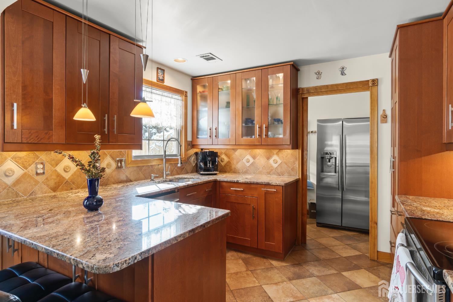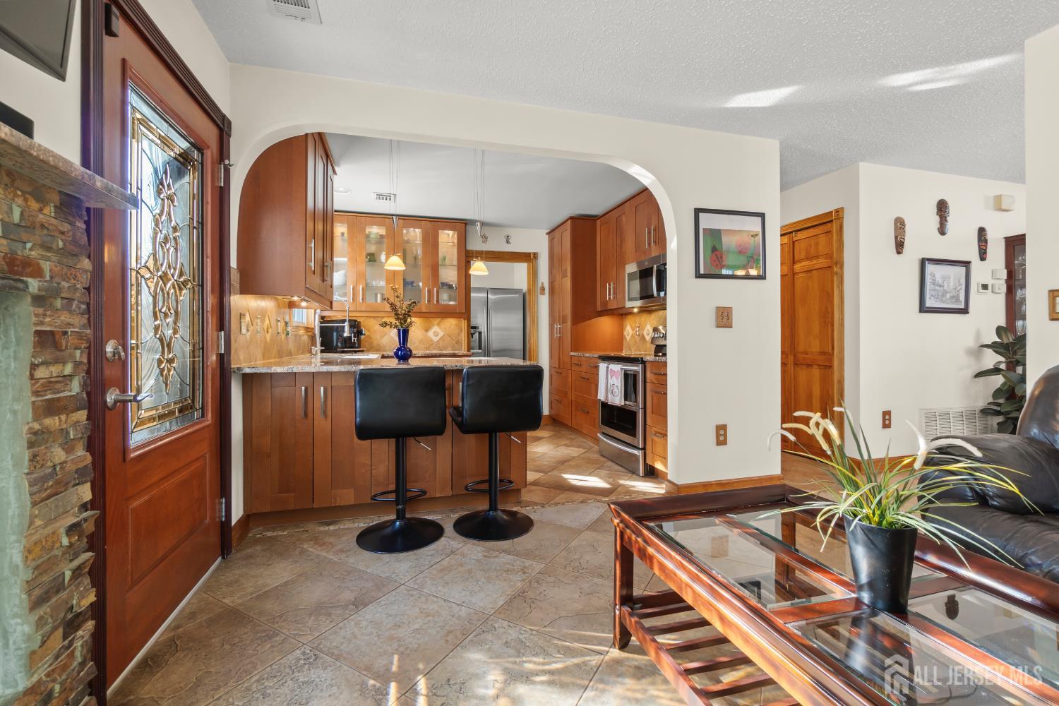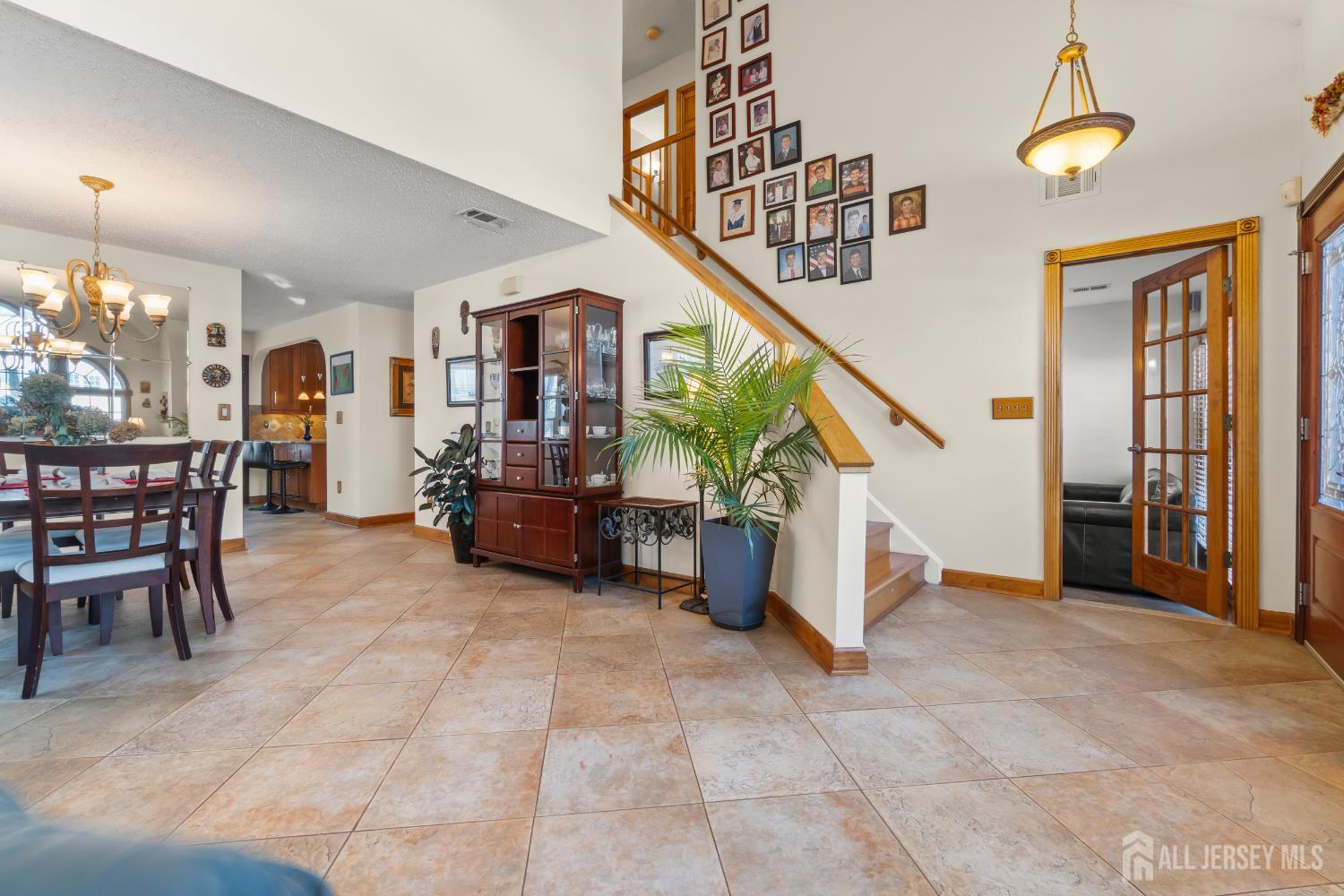 Come tour this masterfully maintained one-of-a-kind home offering 3 bedrooms, 2.5 baths with a fully fenced in backyard located in one of Old Bridge's most sought-after developments, Spring Knolls! As you enter the home, you will notice gorgeous porcelain stone floors imported from Italy within the high ceiling living room which extend past the formal dining area & family room located to the left of the kitchen along with crisp natural lighting pouring in from the premium high efficiency windows. The family room offers a state of the art wood burning fireplace with a stone surround and access to the backyard. Through the back door you will find yourself on a nice sized lot with pavers and a shed in the backyard for extra storage space along with built-in privacy. Adjacent to the family room (which was previously the formal dining area and can always be switched back) is the luxury kitchen jam-packed with amenities including pro style pull down sprayer kitchen faucet, European imported granite countertops,Tile backsplash from Italy, and stainless steel appliances. The kitchen also features bourbon brown 42 cabinets, Tile floors from Italy, and direct access to the main floor washer and dryer. To complete this floor is a powder room right behind the stairs and the converted garage which can be used as office space, kids' playroom, prayer room, game room, workout area or can be easily converted back to a garage! As you move up the second floor you'll find the 3 spacious bedrooms, one of which is the master suite and a second full-size bathroom with a charming vanity & shower/tub. The master suite includes a generous sized closet, ensuite bath with dual sink vanity and a stall shower w/ square shower head + jacuzzi tub. Additional features of this pristine home include recessed lighting, whole-home dehumidifier, water heater (2020), driveway has been pre-wired for an EV Charger (240v) and so much more! Very close proximity to major roadways (NJ Turnpike, Route 9, Route 18 & Garden State Parkway) which give access to Blue Ribbon Schools, shopping centers, NYC, Philadelphia and much more. You definitely do not want to miss this one! CJMLS 2610272R