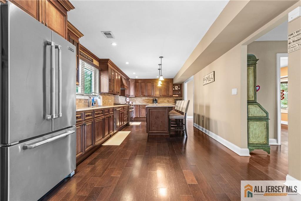 Welcome to Country Place, one of the most desirable residential communities in Old Bridge. Conveniently located near shopping, dining, parks, and top-rated schools, with easy access to Route 9, the Garden State Parkway, and NYC transportationideal for both commuters and families. Discover the perfect blend of luxury, space, and functionality in this meticulously expanded 5-bedroom, 3-bathroom home with a dedicated home office. The main level features engineered hardwood flooring, recessed lighting, and a chef's kitchen with custom cabinetry, soft-close doors, quartz countertops, and premium Jenn-Air appliances including a wine fridge. Originally built with a 2-car garage, one bay was professionally converted in 2001 to expand the living space. A permitted 2006 second-story addition above the garage added a spacious family room, two additional bedrooms, and a private office. Outside, enjoy a resort-style backyard designed for relaxing and entertaining, highlighted by a heated inground pool (approx. 3-6 ft depth). Additional features include energy-efficient Anderson windows, two-zone central air, and updated utilities replaced in 2020. Thoughtfully upgraded throughout and truly move-in ready, this turn-key home is ready for its next chapter . CJMLS 2661122M