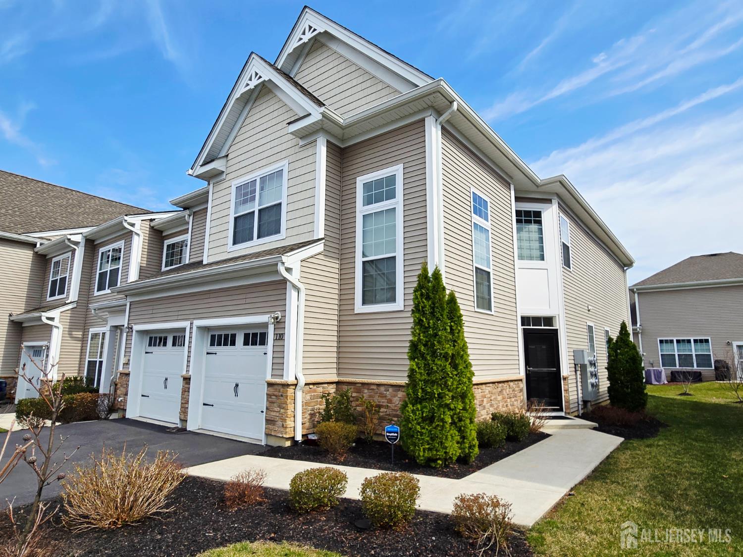 This sunny 55+ home is the total package, combining modern design, selective cosmetic touches, community amenities & convenient location! 2 bed/2.5 bath easily converted to 3 bed. The end-unit Dover is a special & desirable layout in Regents Wharf, featuring a large loft & 2-car garage! Enter the foyer, and view the open living, dining rooms, eat-in kitchen w/breakfast bar, granite counters, 42 cabinets w/lighting underneath, tile backsplash, vented exhaust, extra wide sink. First-level primary bedroom w/large closets & full bath w/double sinks, upgraded ceramic tile work. Upstairs, the loft adds versatility as additional living space, work area, you name it! 2nd bedroom, plus study/den/possible 3rd bed, & extra large storage room! Wood flooring & recessed lighting throughout! 2-car garage equipped w/EV Charging. Laundry rm w/utility sink. Enjoy pleasant days on the patio. Clubhouse w/full range of amenities: fitness room, billiards, outdoor inground pool, catering kitchen, multipurpose rm. Snow, trash removal included. Nearby NYC bus, Rt.9, GSP. CJMLS 2611662R