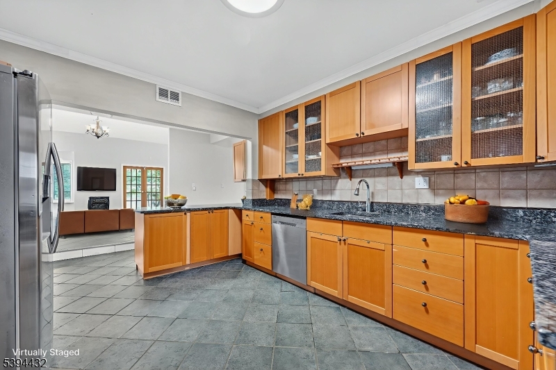 Best & Final Offers due by 11/16/25 @ 6:00pm. This lovely Colonial style home is located on a corner lot in the desirable Sleepy Hollow area. Featuring 4 bedrooms, 4.1 baths & approx. 3,850 sqft floorplan. Enter the 1st floor into a welcoming living room w/ brick front wood burning fireplace w/ original handsome wood mantle, built-in bookcases, arched alcove & wood flooring. French doors lead to a bright den/home office. Exit outdoors on to a blue slate patio area overlooking the inground pool. Formal Dining room w/ built-in corner China cabinet, sun-filled front Sunroom, updated Kitchen with granite counter tops, wood cabinetry, tile flooring, Samsung stainless steel side by side refrigerator, LG 5 burner stove, microwave & dishwasher, side door mud room area, first floor full bath, spacious Great room w/ vaulted ceiling, ventless fireplace stove, island wet bar w/ stools, wine cooler & dishwasher. Slider doors lead out onto an entertaining deck & fenced in back yard & pool area-creating the perfect indoor-outdoor flow for entertaining. The primary suite offers an ensuite bath, dual vanity, sitting room. 2 additional bedrooms plus a laundry room & updated hall bath. The 3rd floor provides a private retreat w/ a bedroom, skylights, sitting area, & full bath. Some home features include: partial Lennox central air conditioning in 2022, 200 amp electrical, Timberline roof, Crown boiler w/ 3 zone baseboard radiator heating, AO Smith hot water heater. GSMLS 3995302