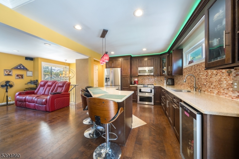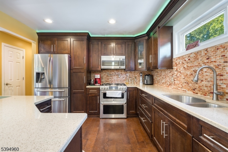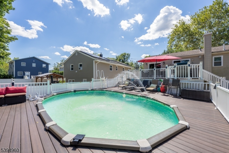 Welcome to 14-16 Netherwood Ave, a charming & spacious 3 Bedroom, 2 Bath home offering comfort & modern convenience. Step into the Entry Foyer w/ tile flooring, beautiful chandelier and large window above front door. Staircase leads up to the First Level with an inviting Living Room featuring a crisp white fireplace, perfect for cozy evenings. The Eat-In Kitchen boasts modern wood cabinetry and stainless steel appliances and flows seamlessly into the Dining Room with sliding doors that lead to a large Wood Deck ideal for entertaining or relaxing outdoors. Enjoy summer days in your private above-ground pool. Also located on the First Level is a Primary Suite with a large Walk-In-Closet and a private En-Suite Bath. An additional Bedroom completes this level, while the Lower Level offers a versatile Rec Room and an additional Bedroom providing space for guests, office, or hobbies and a Full Hall Bath. Access to 2-car attached garage is also located on this level. This home combines indoor and outdoor living with thoughtful spaces for every need. Plus, a half basketball court with in-ground adjustable hoop. Home is centrally located just minutes NYC train, shops, restaurants and more. Don't miss the opportunity to make this Plainfield gem yours! GSMLS 3996312