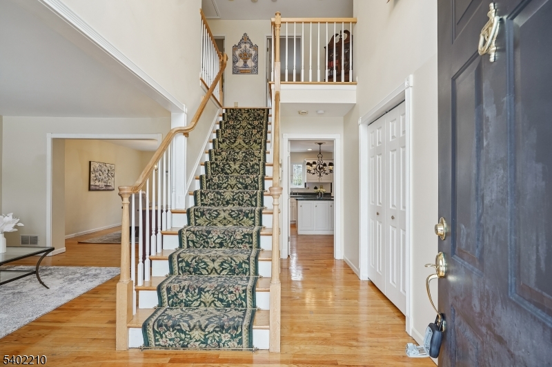 Welcome to this stunning, modern-built residence located on a quiet cul-de-sac in a highly desirable, commuter-friendly community with easy train access to NYC. This expansive property offers exceptional space, functionality, and comfort.The home features 5 generously sized bedrooms plus a private office, perfect for working from home. The spacious eat-in kitchen flows into the living and dining rooms, while the inviting family room with a wood-burning fireplace creates a warm and elegant gathering space. A large two-car attached garage provides direct access to the home.The first floor offers a welcoming foyer, powder room, office, formal living and dining room, an eat-in kitchen, and a family room with sliding doors leading to the deck and backyard ideal for indoor-outdoor entertaining.Upstairs, the primary suite is a true retreat, featuring a walk-in closet, an additional closet, and a large full bath with both a soaking tub and separate shower and a double-sink vanity. Three additional bedrooms and a full bath complete the second level.The fully finished walk-out basement adds incredible versatility with a recreation room, wet bar, full bath, laundry room, guest room, ample storage ideal for entertaining. Add'l features include multi-zone CAC, cent vac, abundant closet space, 4 zone sprinkler system and a beautiful yard with deck, perfect for relaxation and gatherings.This move-in-ready home offers space, style, and convenience in a premier location. 1.6 miles to Trains! GSMLS 4006832