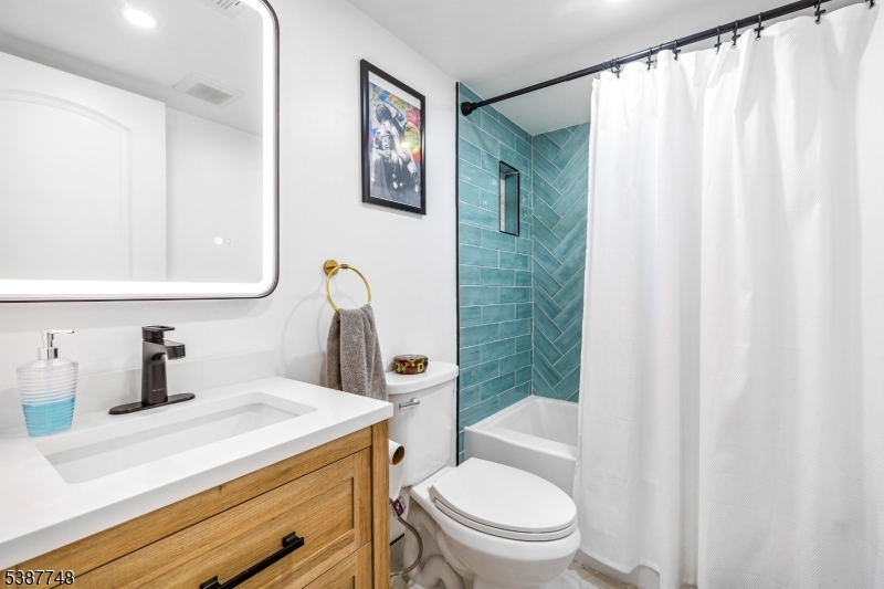 This home has undergone a complete renovation, offering modern finishes, thoughtful design, and move-in-ready living throughout. This 4-bedroom, 3 full bath home features a stunning kitchen with quartz countertops, a waterfall island, sleek cabinetry, stainless steel appliances, and sliding glass doors opening to a serene backyard oasis. The open-concept main level showcases wide-plank oak floors and sun-filled living and dining spaces. Upstairs are four spacious bedrooms, including a tranquil primary suite with a walk-in closet and a spa-inspired shower finished in marble and porcelain tile, along with a second full bath and conveniently located laundry. A finished lower level offers flexible bonus space ideal for a home office, gym, or playroom. Outside, enjoy a newly paved driveway, oversized garage, and a private backyard retreat designed for entertaining or relaxing. Ideally located near NYC transportation, major highways, and top-rated schools, this move-in-ready home delivers the perfect balance of luxury and convenience. GSMLS 4004062