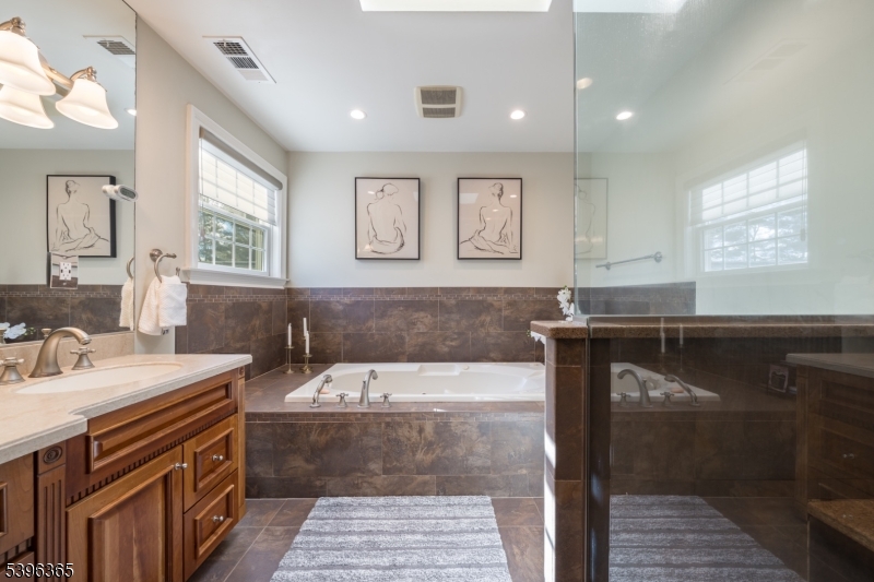 STUNNING 7 BED/7 BATH HOME ON OVER AN ACRE IN PRIME SCOTCH PLAINS LOCATION! This stately home sits on a cul-de-sac w/ a grand circular driveway and wide covered front porch. Step inside to an incredible two-story foyer bathed in light from oversized windows. Dining Room w/ beautiful built-in modern bamboo cabinetry offering storage & service areas including hidden dishwasher! Expansive Family Room w/ two-story ceiling, windows on three sides & stacked stone wood-burning fireplace stretches along the back of the house. In warmer months, opt to dine on the covered flagstone patio just off the Family Room & Kitchen or sit at the bar surrounding the built-in grill. Indoor meal prep is a breeze w/ open Kitchen layout, incredible storage in custom wood cabinetry, professional SS appliances & an L-shaped island w/ bar top. Private bedroom wing on this level offers TWO ensuites and a full hall bath! Upstairs find a Primary Suite overlooking the backyard, 2 closets & large updated Bath w/ double-sink vanity, walk-in shower and separate Jacuzzi tub. Ensuite Bedroom next door has been converted to a dream Dressing Room w/ custom white cabinetry and additional walk-in closet that could easily return to a bedroom if desired. There are 3 other Bedrooms on this level & a spacious Hall Bath. The Lower Level offers even more space to relax with newly finished Rec Room & Full Bathroom. Every detail has been lovingly updated and you couldn't ask for a better place to start your next chapter! GSMLS 4006402