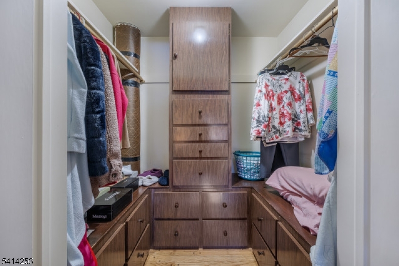 Enjoy 3,520 square feet of living space on a quiet cul-de-sac in one of Scotch Plains' most desirable neighborhoods. Situated on just over a half-acre of land, this spacious center hall Colonial stands out with a rare combination of five oversized bedrooms with abundant closet space and a large basement featuring impressive rare 9-foot ceilings This home has abundant off-street parking and an oversized two-car garage. The first floor is thoughtfully designed: a welcoming foyer leads to a large living room ideal for gatherings, an inviting family room with fireplace, and a country-style eat-in kitchen featuring stainless steel appliances, double oven, center island with double sink, and an expansive walk-in pantry.The formal dining room offers flexibility and can easily serve as a first floor bedroom, home office, study, or additional living space. A guest powder room, full bathroom and convenient first-floor laundry adds to the home's everyday practicality. The spacious primary suite features two walk-in closets and a private en-suite bath, while the additional 4 large bedrooms with custom built-in drawers providing excellent storage solutions. Additional highlights include hardwood flooring and a dedicated gym area within the basement space, ready to be customized to fit your lifestyle. Truly a rare opportunity combining space, storage, and location in one of Scotch Plains' most sought-after neighborhoods. Purchase includes a ONE year home warranty. GSMLS 4012123