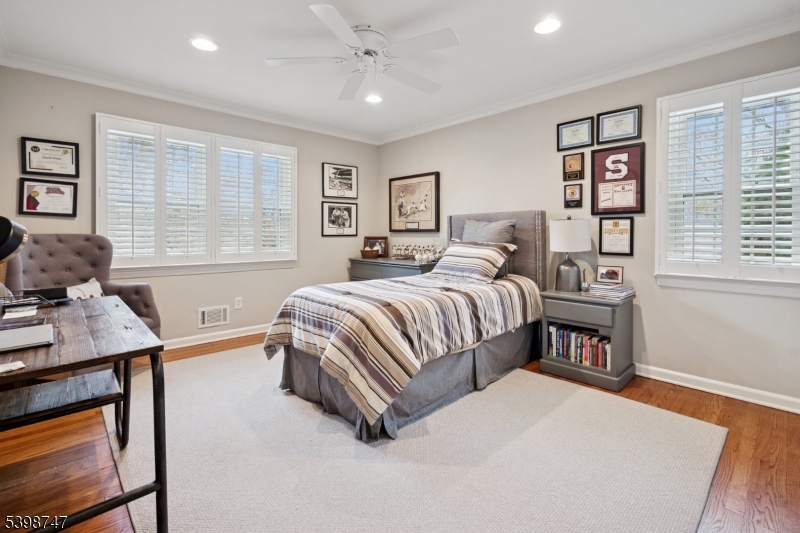Do not miss this 5BR/3.1 bath colonial tucked away on a cul-de-sac in the Franklin elementary school district. A beautifully renovated home throughout and meticulously maintained. Bright eat-in kitchen features white cabinetry, granite counter tops, stainless steel appliances (Viking, Thermador, Miele) and built-in corner banquette for dining. Living Room focal point is a handsome fireplace/wood mantle and natural stone surround and features custom built-ins to showcase, books, photos and collectables. Both Living and Dining rooms are decorated with beautiful designer custom window treatments and wall coverings. Charming family room provides ample natural light with three walls of windows and access out to backyard and patio. Bonus room on the first floor is the perfect space for a home office with a convenient powder room located off main entrance. On the second floor you will find 5 bedrooms including the primary which features a private bath and two double closets. One of the bedrms is currently being used as a home gym but all feature double closets, plantation shutters, hardwood floors and ceiling fans. Completing the 2nd level is a renovated hallway bath which includes an oversized vanity with natural stone counter top and shower over tub. Easy access into full attic with pull down stairs from hallway. Lower level Rec Rm is the perfect spot for fun and games. Plenty of storage space in the laundry, full bath (shower over tub) and utility rooms too. Offers due 12/9 (3pm) GSMLS 3999225