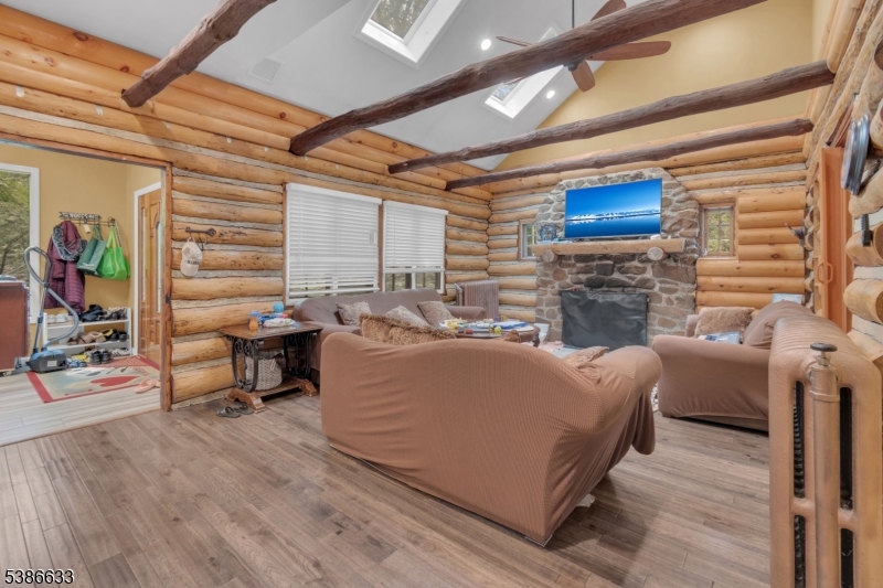 Sophisticated Country Living in Prestigious Warren! Distinctive 4BR, 2.5BA log cabin estate showcasing dramatic vaulted ceilings, rich wood finishes, and sun-filled open spaces. The resort-like backyard features a sparkling in-ground pool, entertaining patio, and 2-car garage, all set on a private, picturesque property just minutes from schools, fine dining, and NYC access.GSMLS 3988476