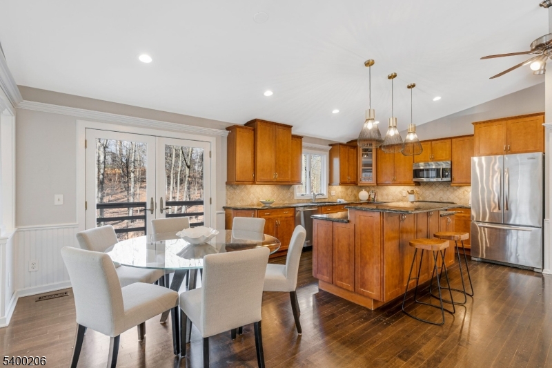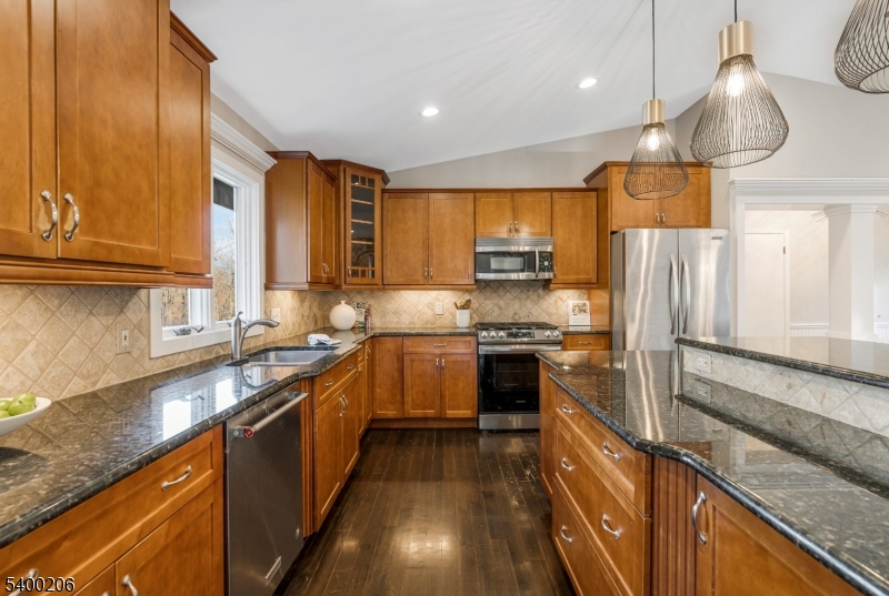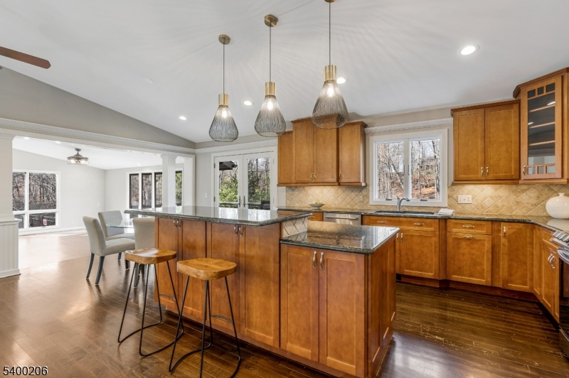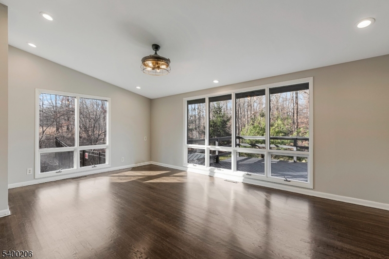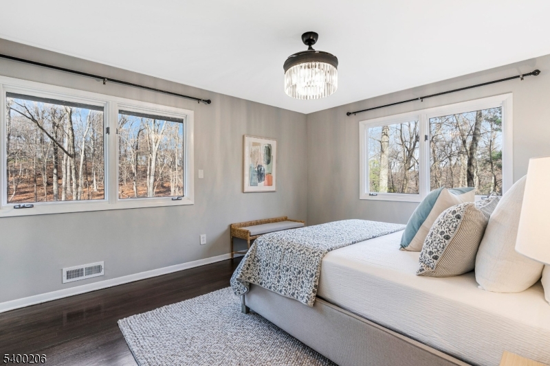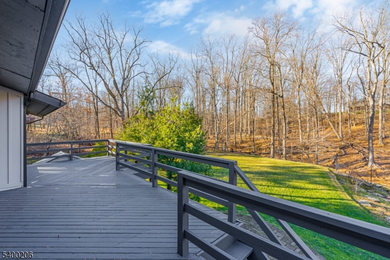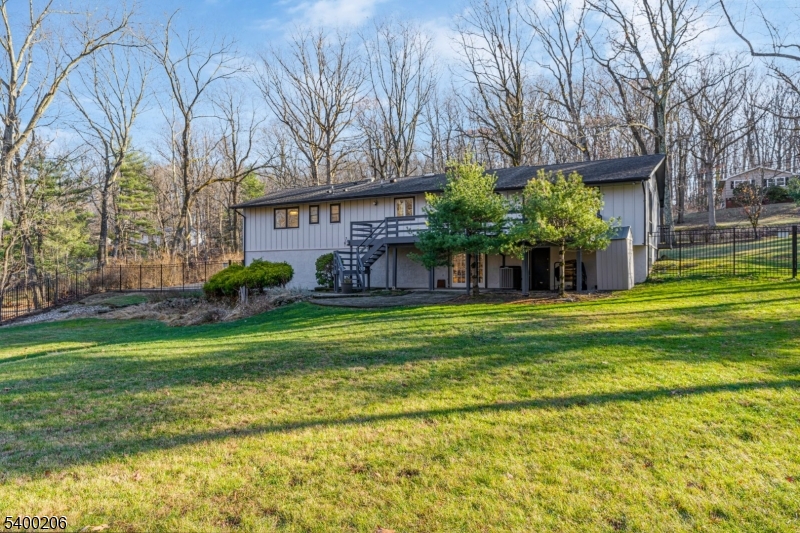 Beautifully updated and expanded 4-bedroom, 3.5-bath custom ranch set on a spectacular private, park-like fully fenced in property in highly desirable Warren Township. This sun-filled home offers true one-floor living, an open-concept layout, and exceptional indoor/outdoor flow perfect for both everyday living and entertaining. The main level features a spacious great room with cathedral ceilings and a wood-burning fireplace, seamlessly connected to the chef's kitchen with center island and direct access to the expansive deck overlooking the fully fenced yard. The primary suite includes a renovated en-suite bath, while two additional bedrooms share a beautifully updated hall bath. A separate guest suite with a private full bath and its own outdoor balcony provides ideal space for visitors, multi-generational living, or home office. The large finished walkout lower level includes a second wood-burning fireplace, laundry room/half bath, office or gym area, access to the oversized two-car garage, and additional unfinished storage space. With hardwood floors throughout, updated kitchen and baths, a flexible floor plan, and easy access to major highways and direct NYC bus service, this home combines comfort, convenience, and exceptional location. All within the top-rated Warren Township school district this property is not to be missed. GSMLS 4000414