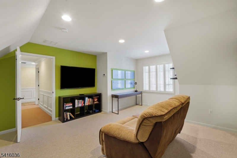 RARE OPPORTUNITY to live in one of Warren's MOST PRESTIGIOUS neighborhoods. Spanning over 8,600 sq ft across 3 finished levels, this exceptional residence is thoughtfully designed for effortless entertaining both indoors & out. Inside, a dramatic front-to-back marble foyer welcomes you w/an impressive 18-foot barrel ceiling & sweeping butterfly staircase. Gourmet designer kitchen features custom cabinetry, WOLF & SUB-ZERO appliances, leathered granite & limestone countertops, walk-in pantry, large center island w/bar seating & butler's pantry. Stunning great room is highlighted by an 18-foot coffered ceiling, striking stone fireplace & an impressive wall of floor-to-ceiling glass overlooking the private backyard. Formal living & dining rooms display exquisite millwork. FIRST LEVEL also includes a handsome library w/rich wainscoting, built-in bookcases & a gas fireplace along w/a convenient EN-SUITE BEDROOM ideal for guests. Upstairs, the luxurious primary suite features a bay sitting area & a spa-inspired bath w/radiant heated floors. 4 addt'l bedrooms & 3 full baths incl. multiple en-suite bedrooms & custom walk-in closets. Finished LL provides addt'l living space w/a gym, media room, powder room & abundant storage. Resort-style backyard features expansive stone patios, pool w/motorized cover, hot tub, spacious dining terrace & a charming POOL HOUSE W/COVERED PORCH, changing area & half bath. Whole-house GENERATOR. Close proximity to PINGRY. Beautiful, private, wooded lot. GSMLS 4015417