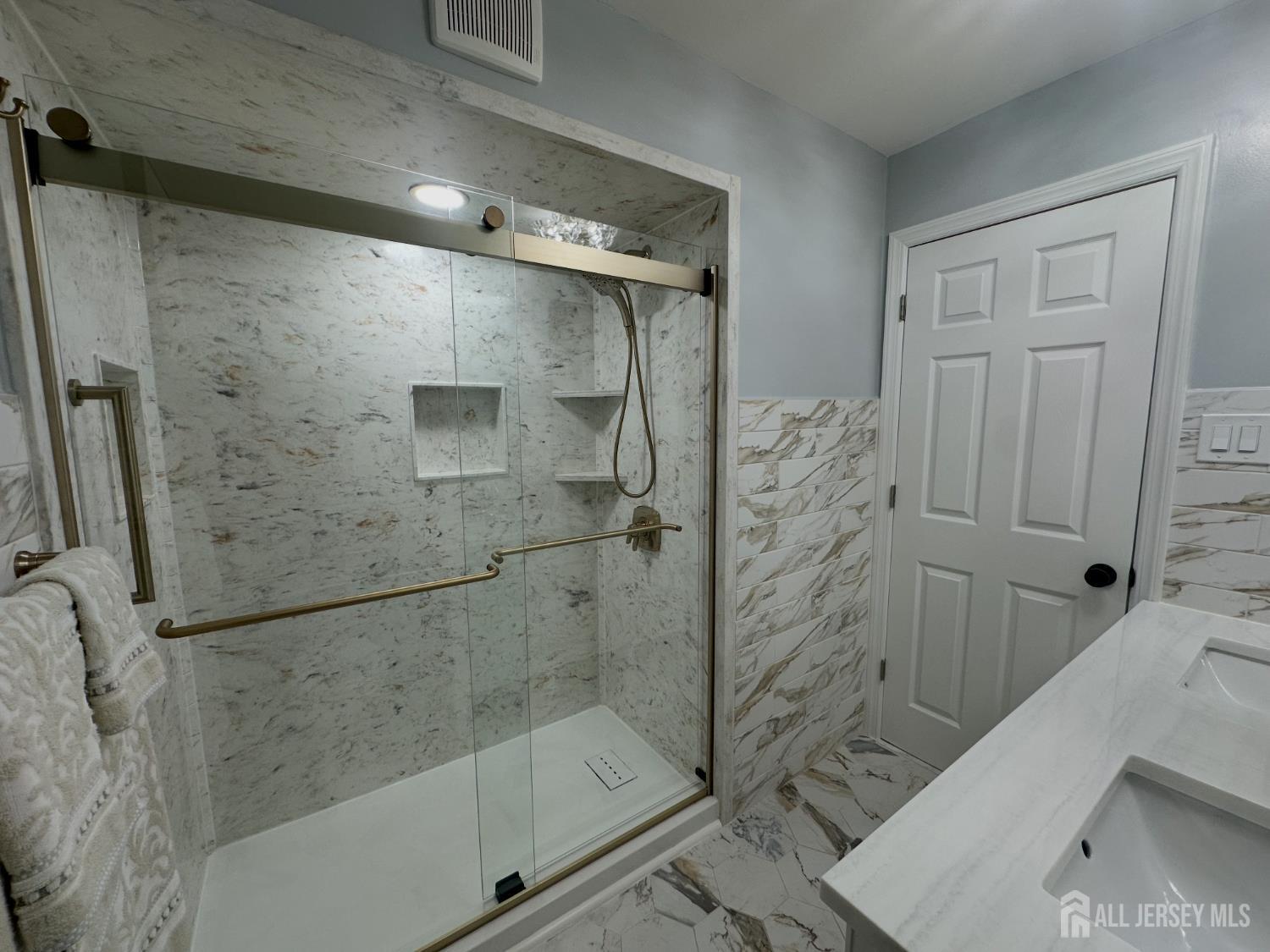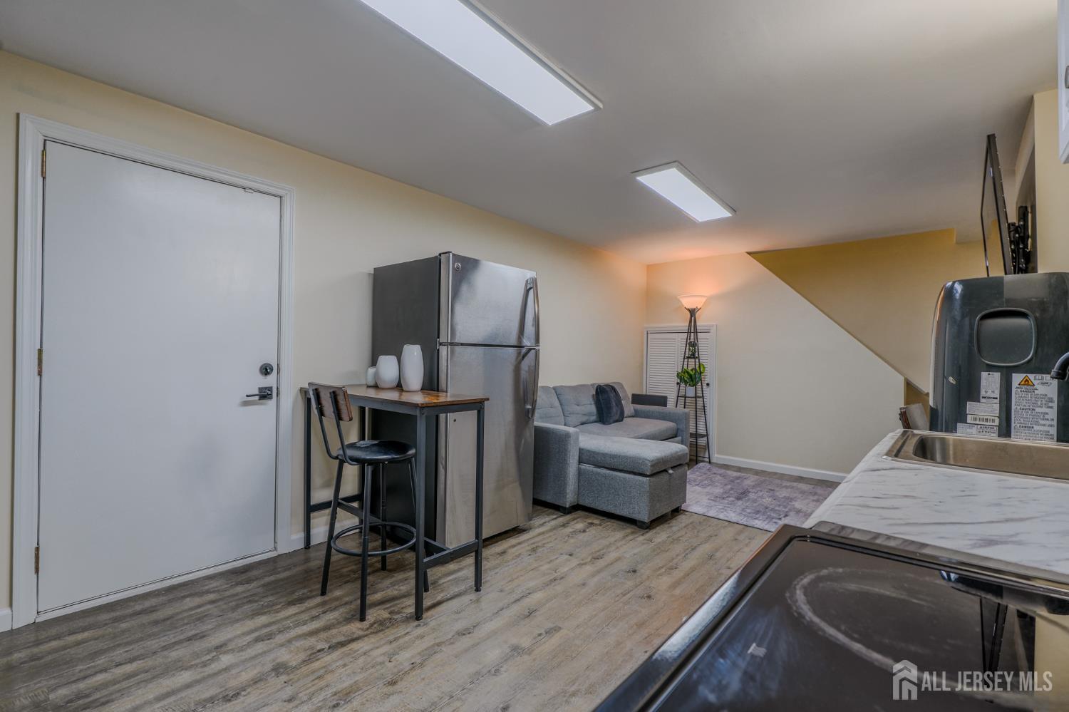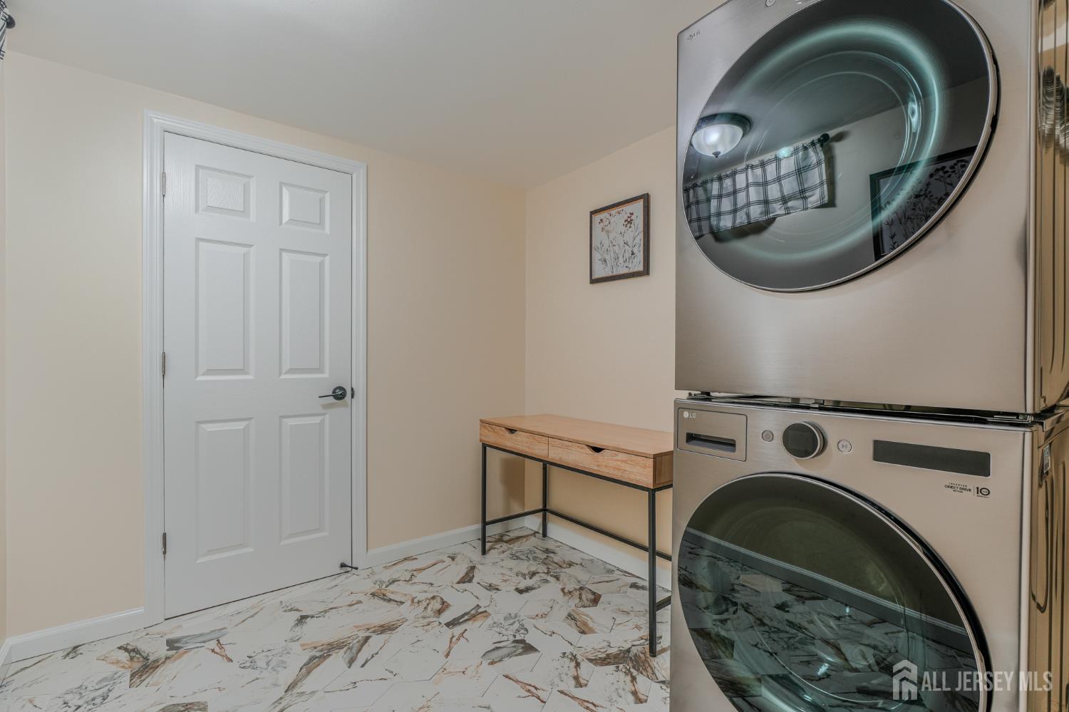 Welcome to 903 Cricket Lane, a beautifully renovated end-unit condo in the sought-after Wyndmoor Condominium Community of Woodbridge. This luxury move-in ready home has been updated from top to bottom with quality finishes and major system upgrades, offering the perfect blend of style, comfort, and convenience. Highlights include energy-efficient Pella windows with a lifetime warranty, marble stone countertops, soft-close cabinets, brand-new stainless steel GE appliances, updated flooring, stone accent walls, redone ceilings, all-new doors and frames, LED lighting with remote controls, a brand-new electrical panel, and a fully remodeled bathroom with ceramic tile, marble vanity, and an engineered stone shower. The finished basement with a private entrance adds incredible flexibility, ideal for a guest suite, recreation space, or extended living setup. It features its own kitchenette area with sink, electric stove, refrigerator, new cabinetry, a full updated bath, and a private laundry room. Additional upgrades include LG washer/dryer set with 5-year warranty, a brand-new furnace and water heater installed in 2025, a separate basement storage with an additional washer/dryer. The assigned parking spot just outside the front door. The low HOA covers exterior maintenance, snow removal, grass, sidewalks, parking lot maintenance, and tennis courts. Residents also enjoy access to a BBQ/picnic area, playground, and tennis courts, all in a convenient location close to downtown Woodbridge, shopping, and dining. Ideally located for commuters, this home offers easy access to NJ TRANSIT train service from Woodbridge Station to Newark and New York Penn Station, bus service to Port Authority, and nearby connections to the Garden State Parkway, New Jersey Turnpike, Routes 1, 9, and 440.