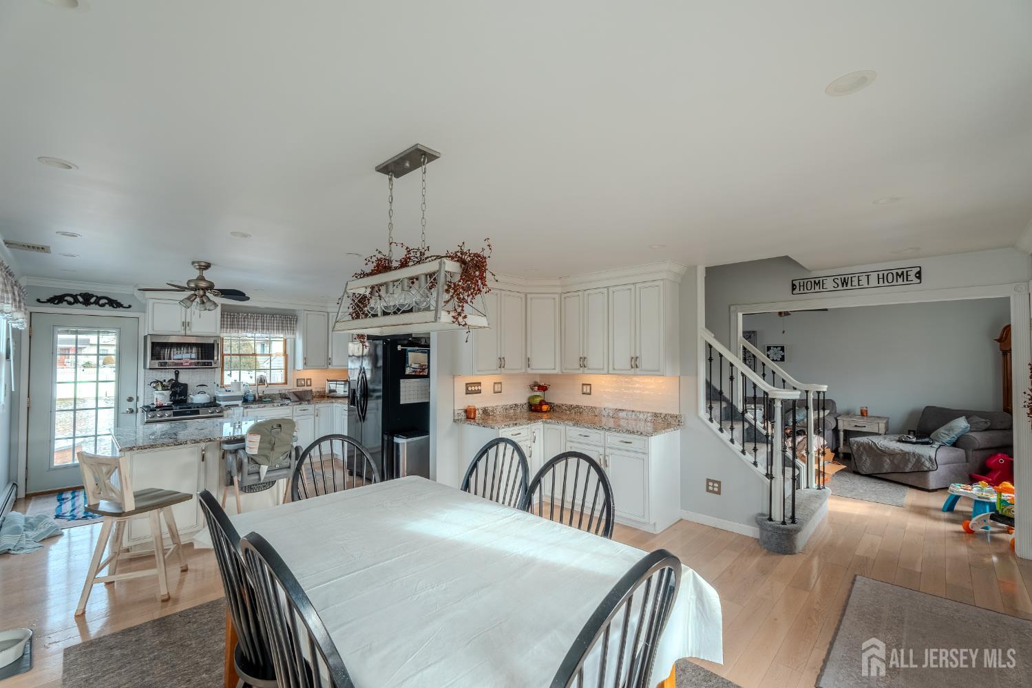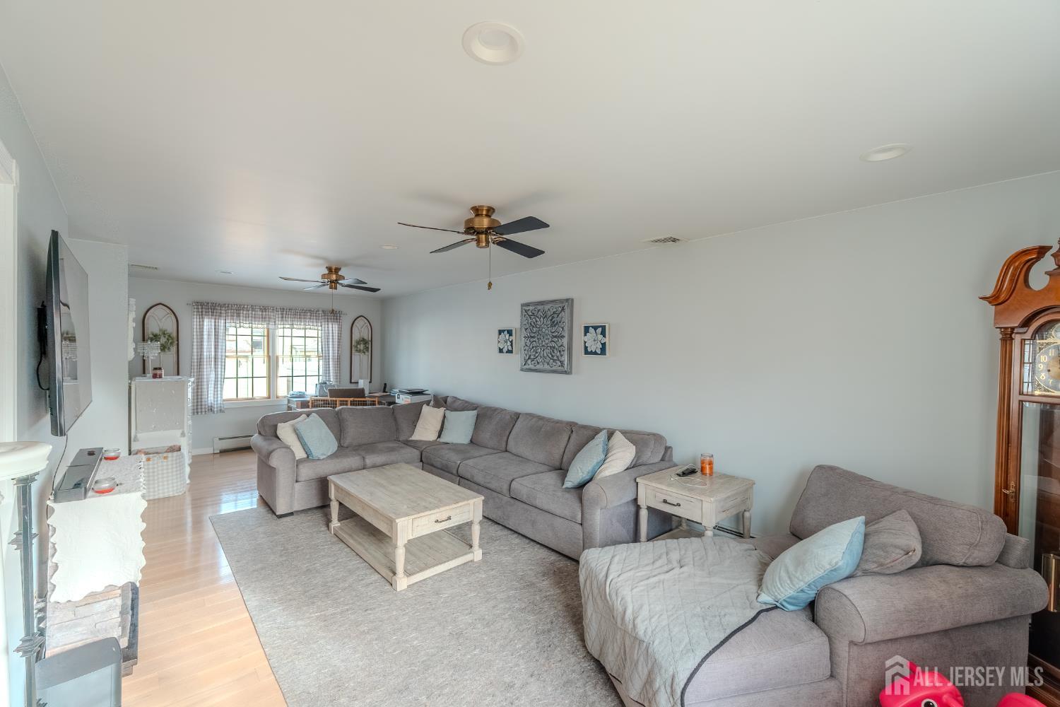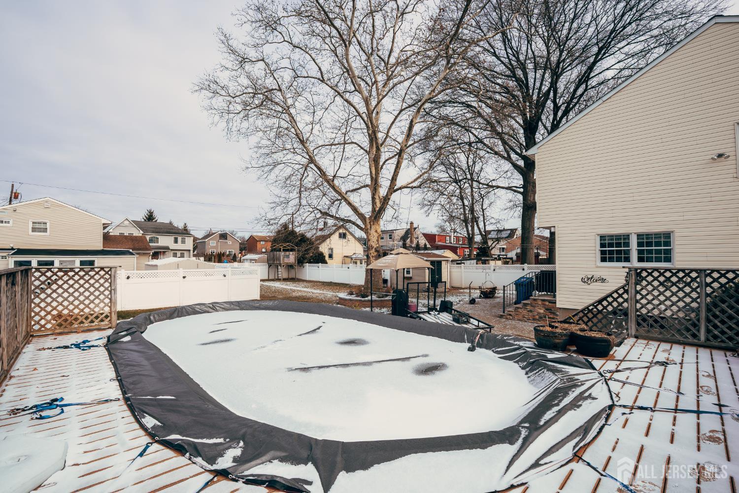 Welcome to this beautifully maintained Colonial set on a rare double lot in Hopelawn, offering space, comfort, and thoughtful updates throughout. This 3-bedroom, 2.5-bath home features 1,834 sq ft of living space with hardwood floors, recessed lighting, and an open layout ideal for everyday living and entertaining. The updated kitchen (2020) offers custom cabinetry, granite countertops, modern appliances, and under-cabinet lighting, flowing into the dining and living areas. The primary suite includes a private en-suite bath, spacious dressing-room style closet, and an additional double closet. A partially finished basement provides flexible bonus space with an additional shower and toilet. Enjoy the private backyard with a custom patio, pool, fenced yard, and multiple storage sheds, plus ample parking with a 4-car driveway and additional rear parking. Major updates include central A/C (2018), new roof and gutters with gutter guards (2024), gas baseboard heating with three zones, public water and sewer, and a full attic with pull-down stairs for additional storage. A move-in-ready home offering both indoor comfort and outdoor space in a convenient Hopelawn location.